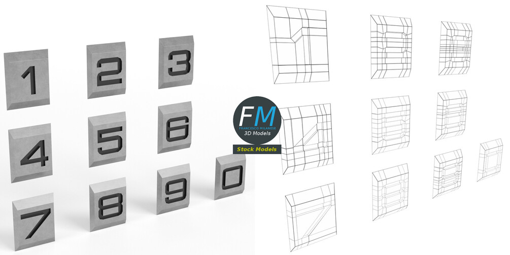 Engraved numbers 3D Model. Production-ready 3D Model, with PBR materials, textures, non overlapping UV Layout map provided in the package.