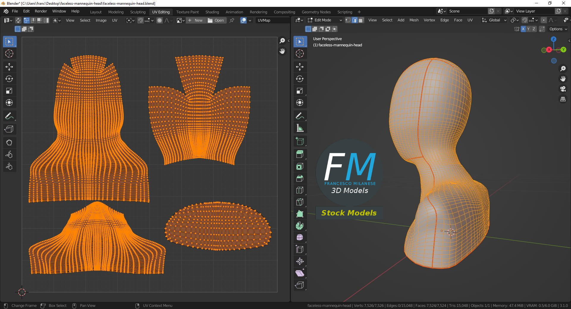 Faceless mannequin head 3D Model. Production-ready 3D Model, with PBR materials, textures, non overlapping UV Layout map provided in the package.