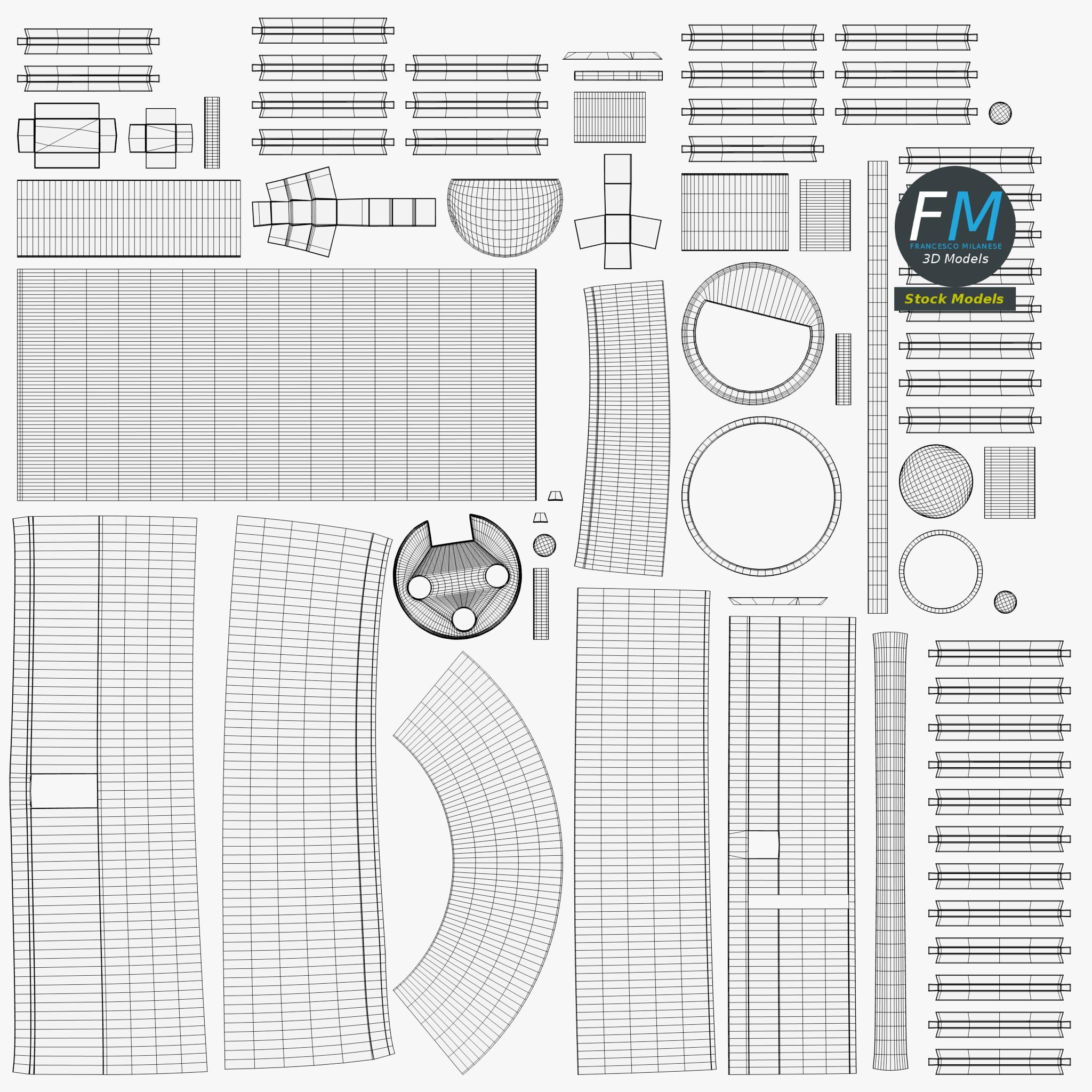 Easily customizable: UV unwrapped geometries, so you can create new Textures (or modify the existing ones) using the UV Layout maps provided in the package (as png with alpha).