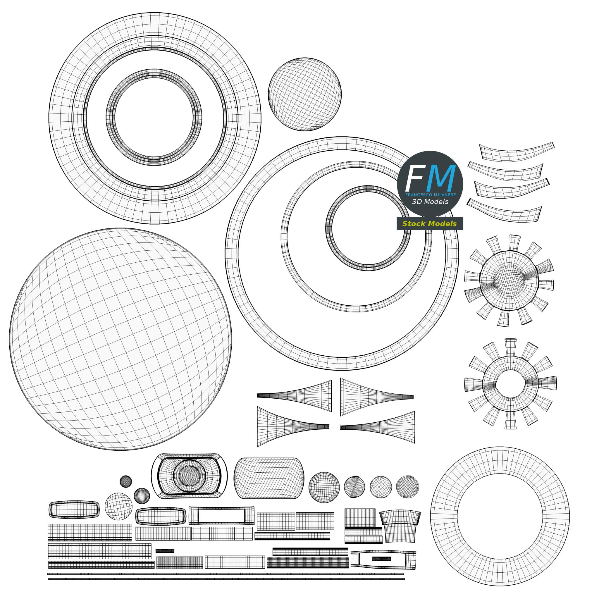 Easily customizable: UV unwrapped geometries, so you can create new Textures (or modify the existing ones) using the UV Layout maps provided in the package (as png with alpha).