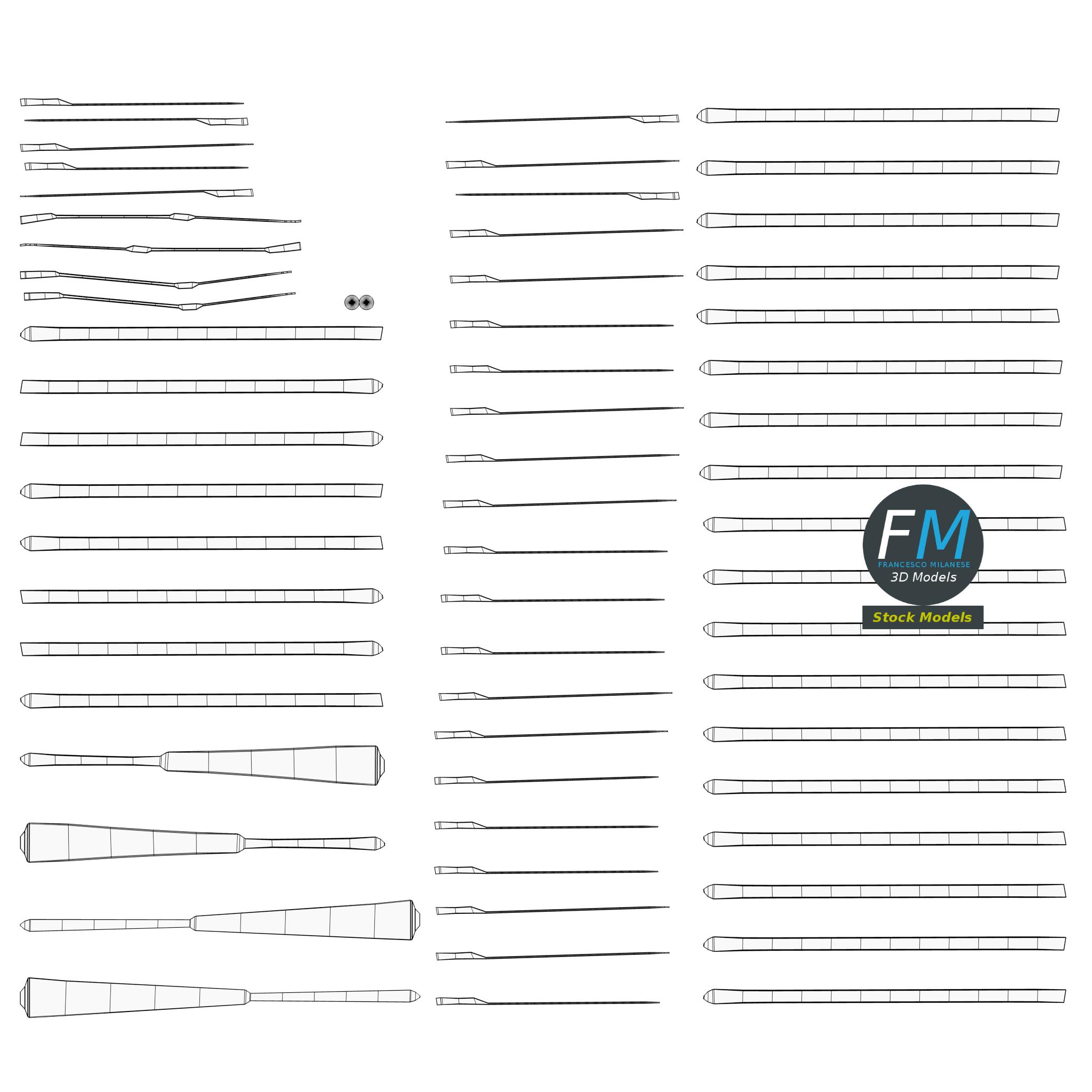 Easily customizable: UV unwrapped geometries, so you can create new Textures (or modify the existing ones) using the UV Layout maps provided in the package (as png with alpha).