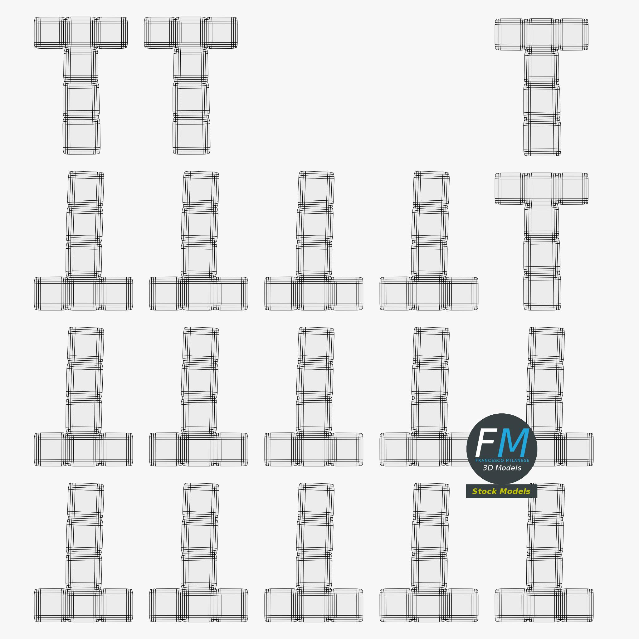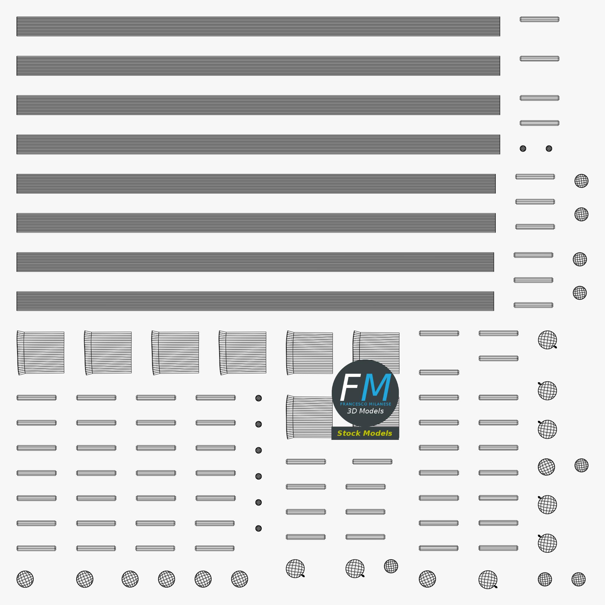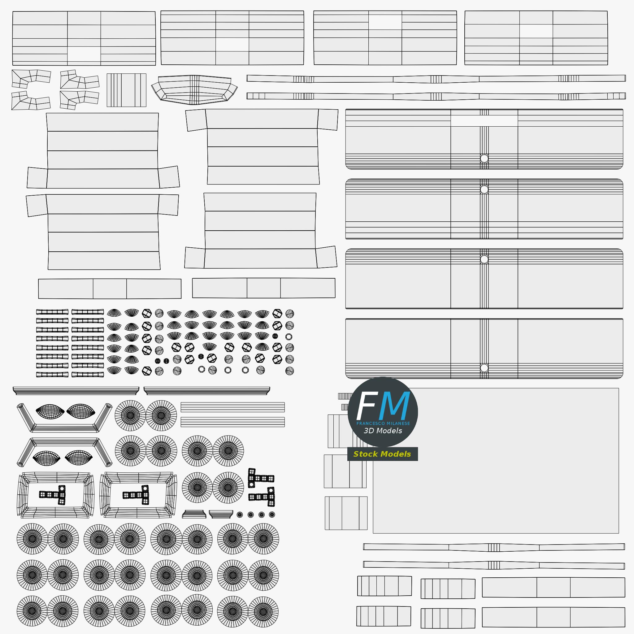 Easily customizable: UV unwrapped geometries; UV Layout maps provided in the package as png with alpha images.