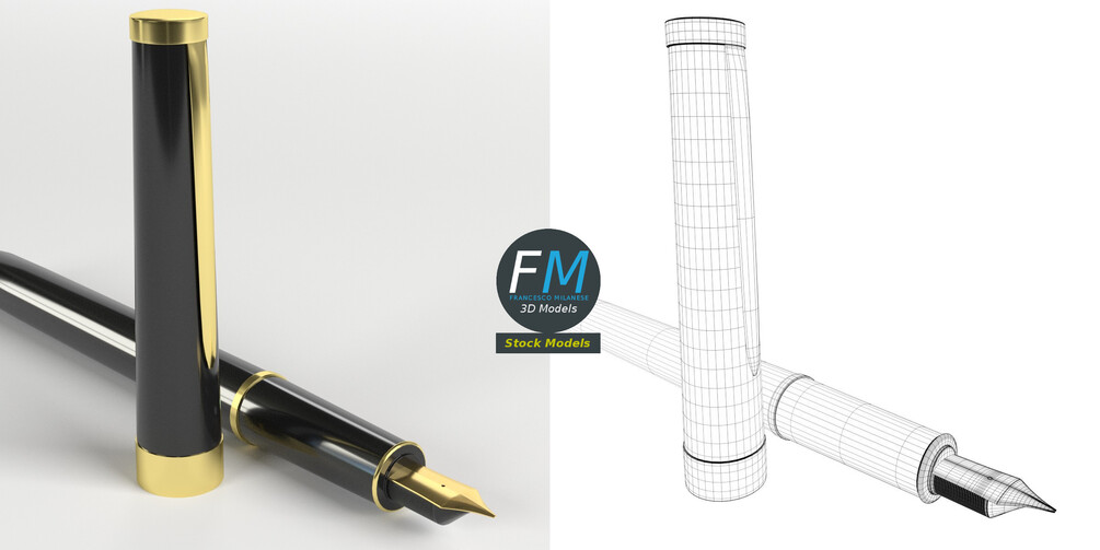 Fountain pen 3D Model. 2 objects (pen, top), sharing the same non overlapping UV Layout map, Material and PBR Textures set. Production-ready 3D Model, with PBR materials, textures, non overlapping UV Layout map provided in the package.