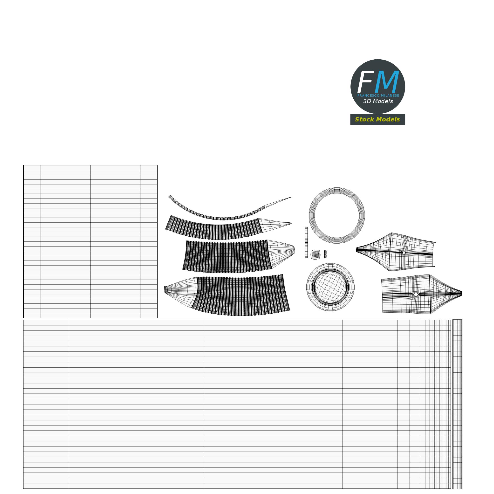Easily customizable: UV unwrapped geometries, so you can create new Textures (or modify the existing ones) using the UV Layout maps provided in the package (as png with alpha).