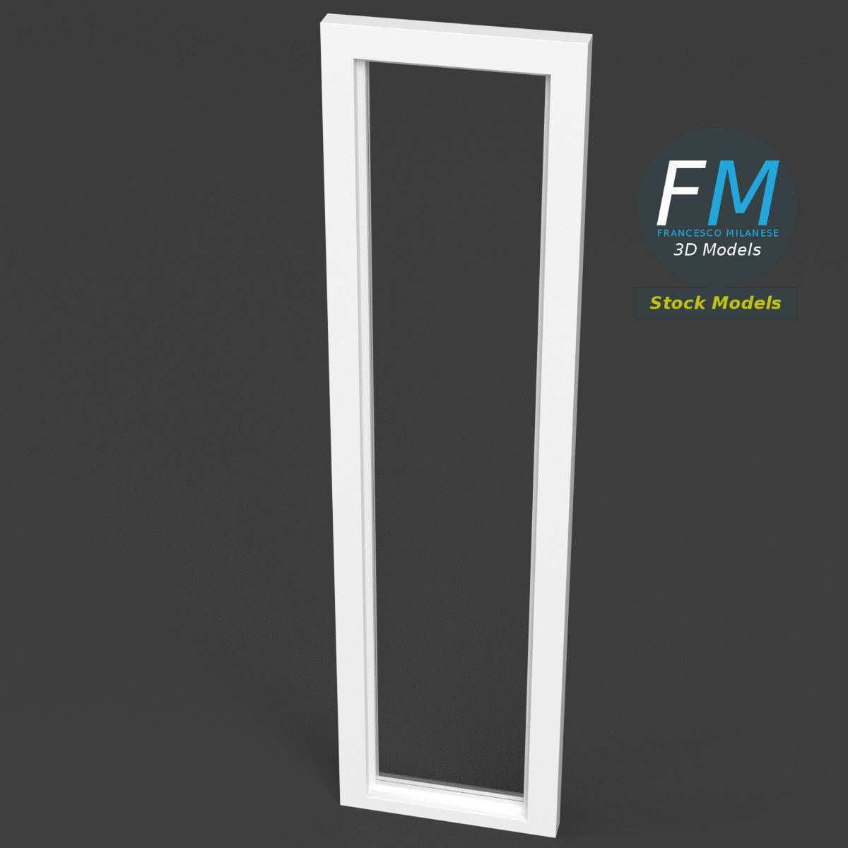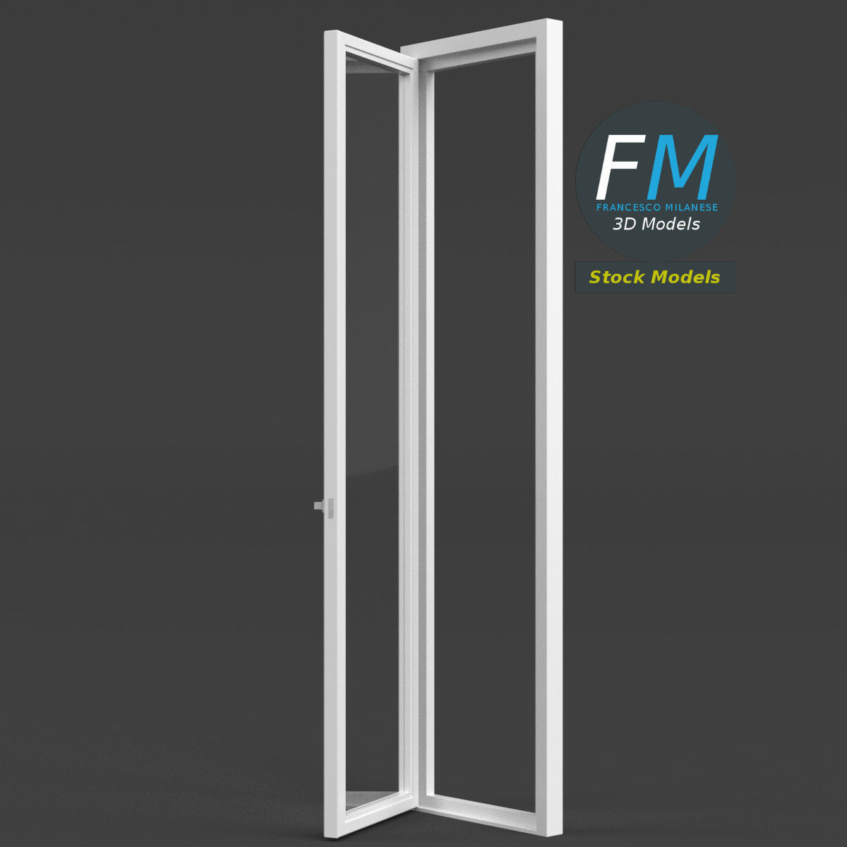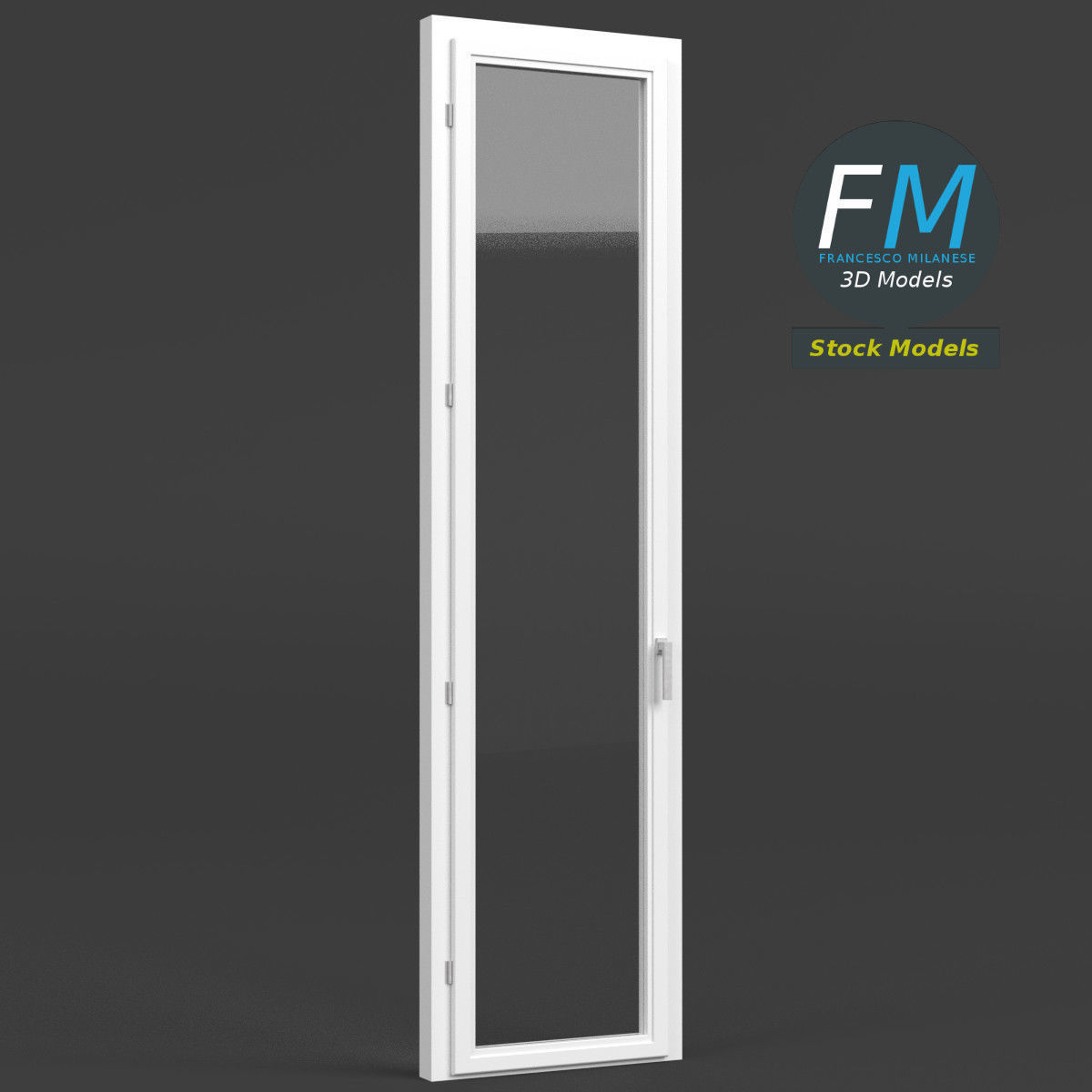 French window 3D Model. 4 individual objects (frame, door frame, glass, handle; so, you can easily rotate or even animate them --- see preview images), sharing the same non overlapping UV Layout map, 2 Materials (glass, frames) and PBR Textures sets.