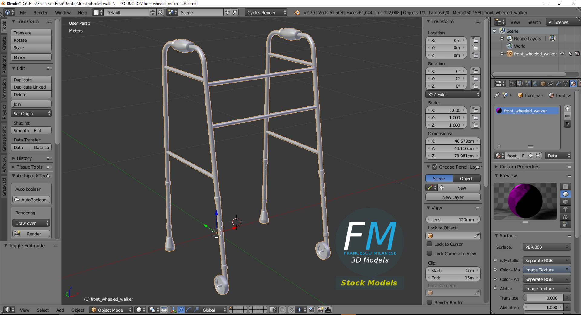 Front-wheeled walker 3D Model. Production-ready 3D Model, with PBR materials, textures, non overlapping UV Layout map provided in the package.