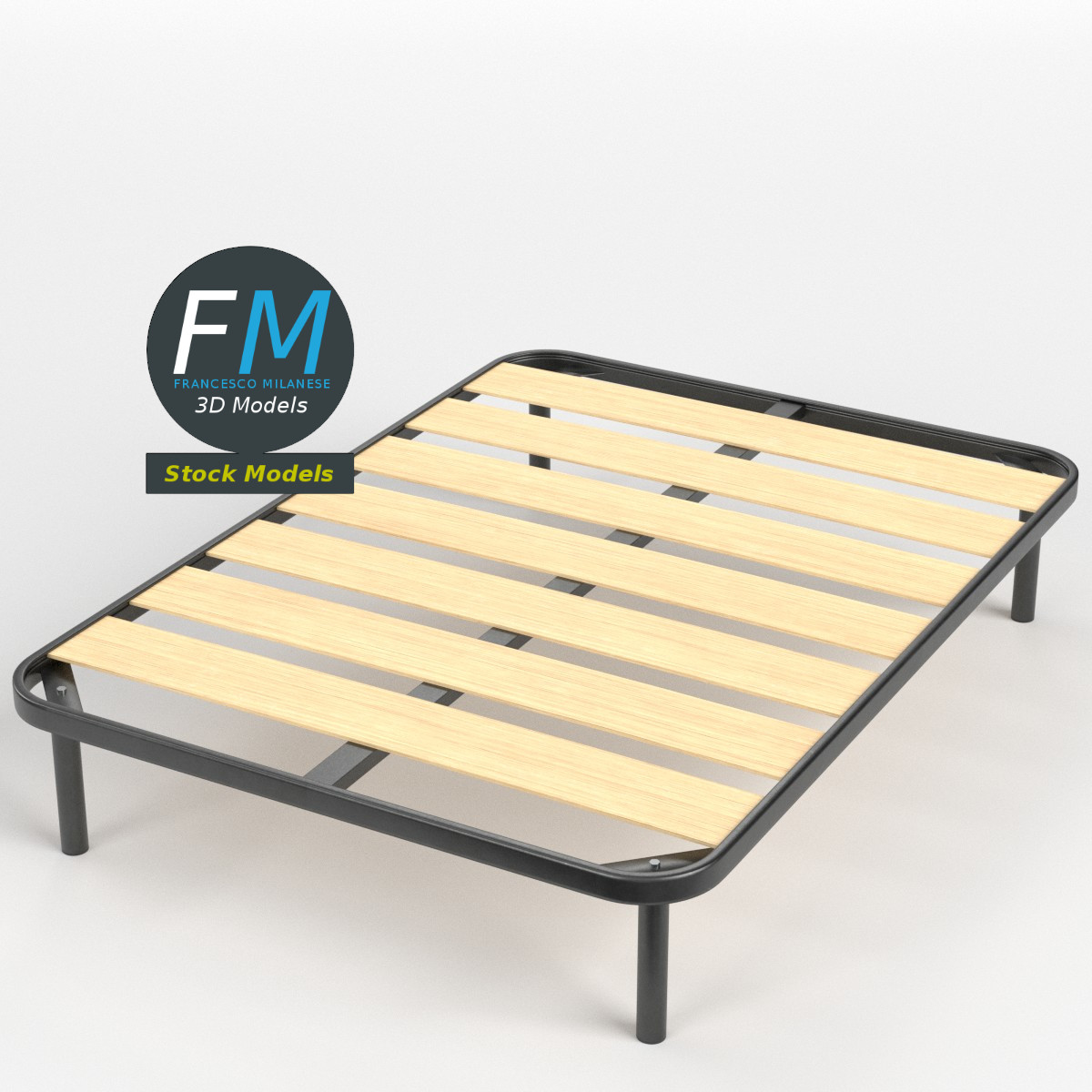 3D MODEL - Full size bed frame with large slats