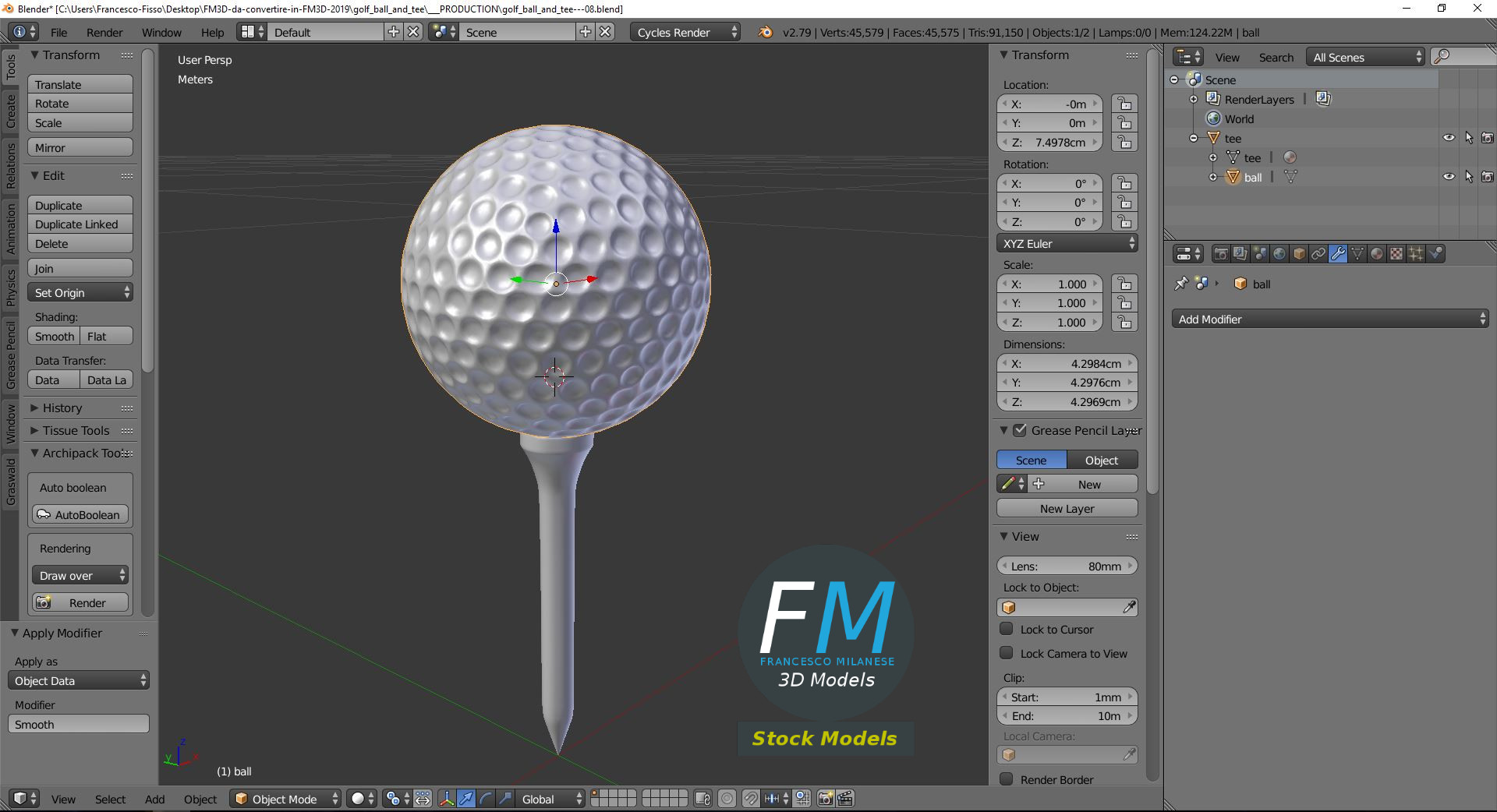 3D MODEL - Golf ball and tee