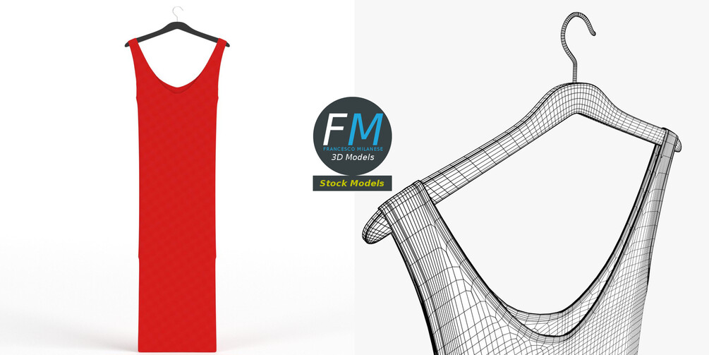 Hanging dress 3D Model, nr. 1 in my collection. 2 individual objects (coat hanger, dress), each one with its own non overlapping UV Layout map, Material and PBR Textures set. Production-ready 3D Model, with PBR materials, textures, non overlapping UV Layout map provided in the package.