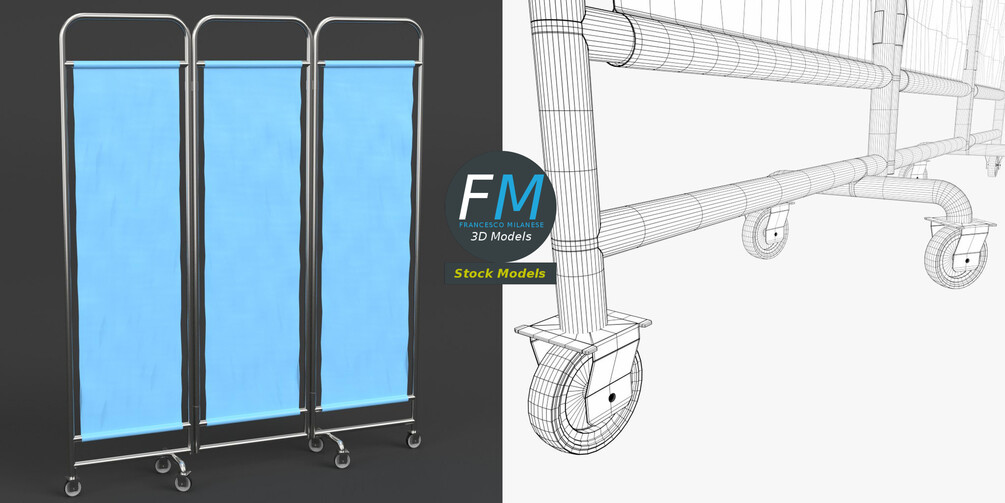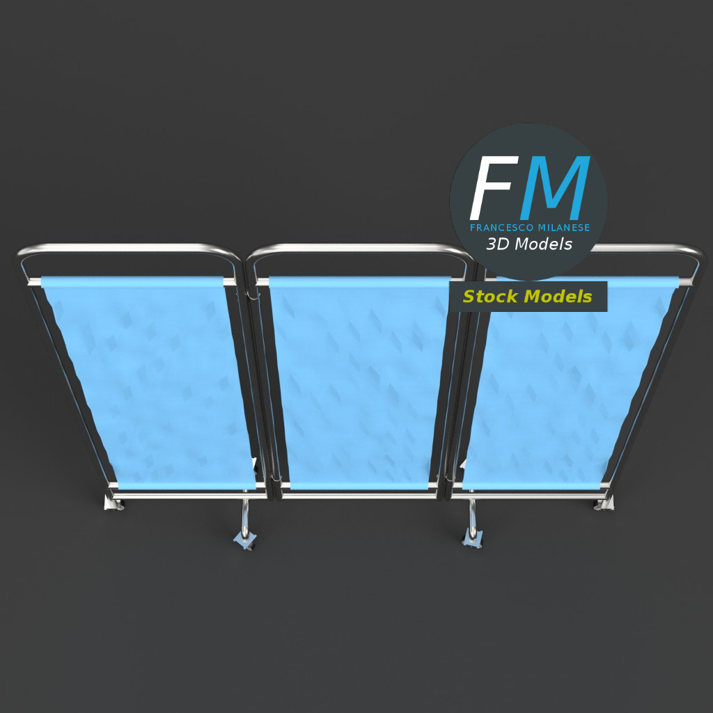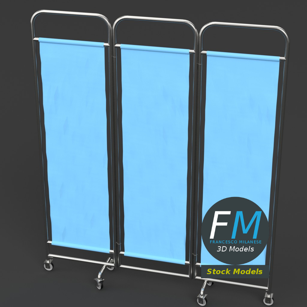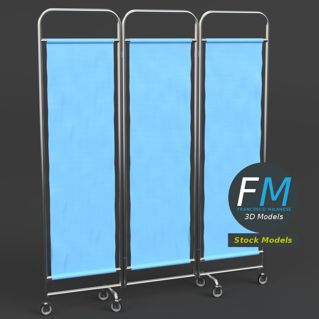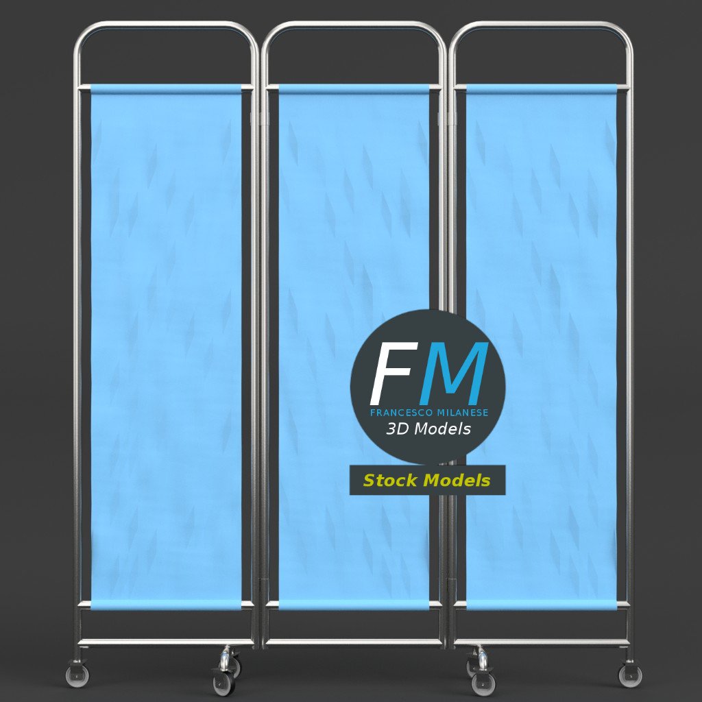 Hospital ward privacy screen 3D Model. Production-ready 3D Model, with PBR materials, textures, non overlapping UV Layout map provided in the package.