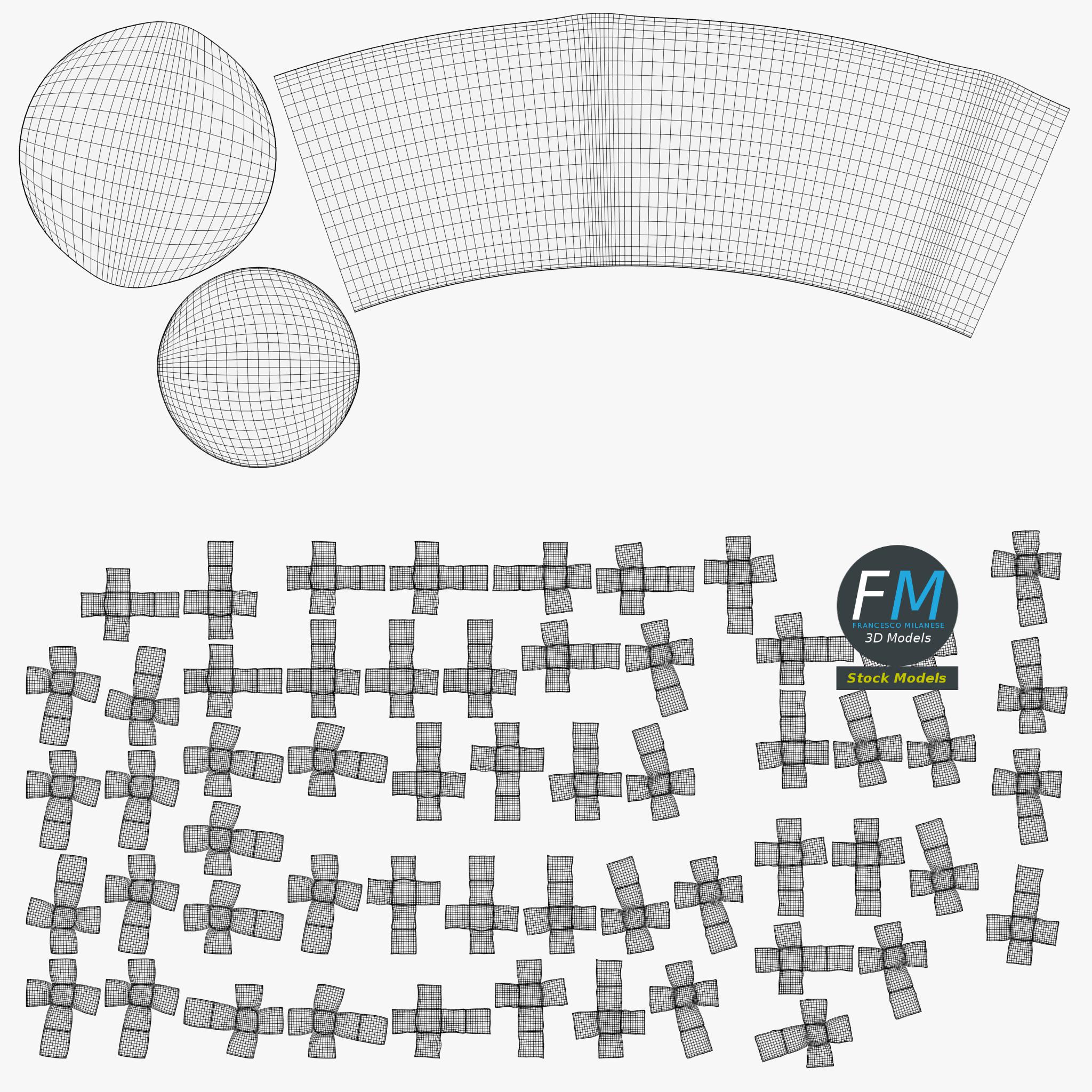 3 Objects (meshes), 2 PBR Materials, UV unwrapped (non overlapping UV Layout map provided in the package); UV-mapped Textures.