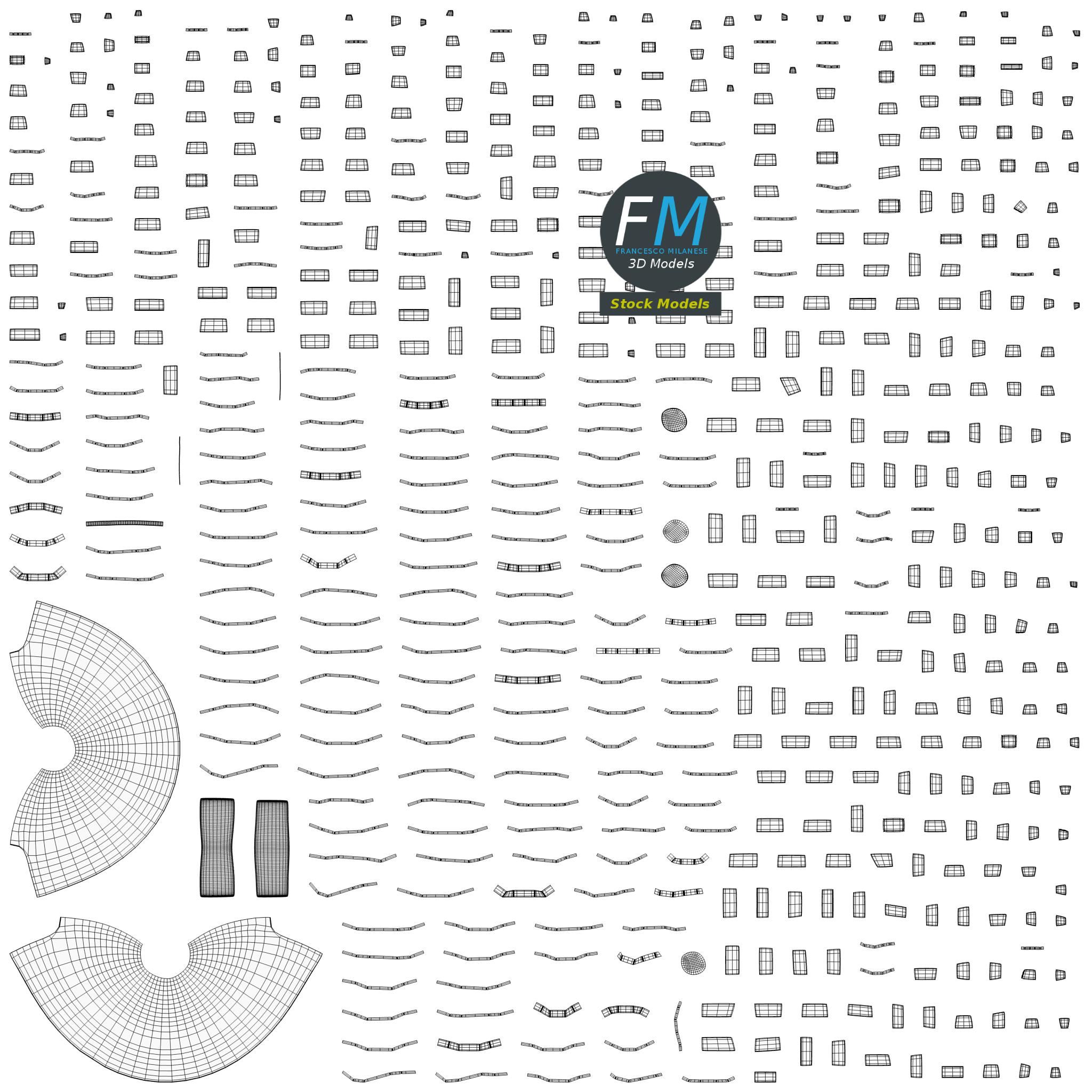 Easily customizable: UV unwrapped geometries, so you can create new Textures (or modify the existing ones) using the UV Layout maps provided in the package (as png with alpha).