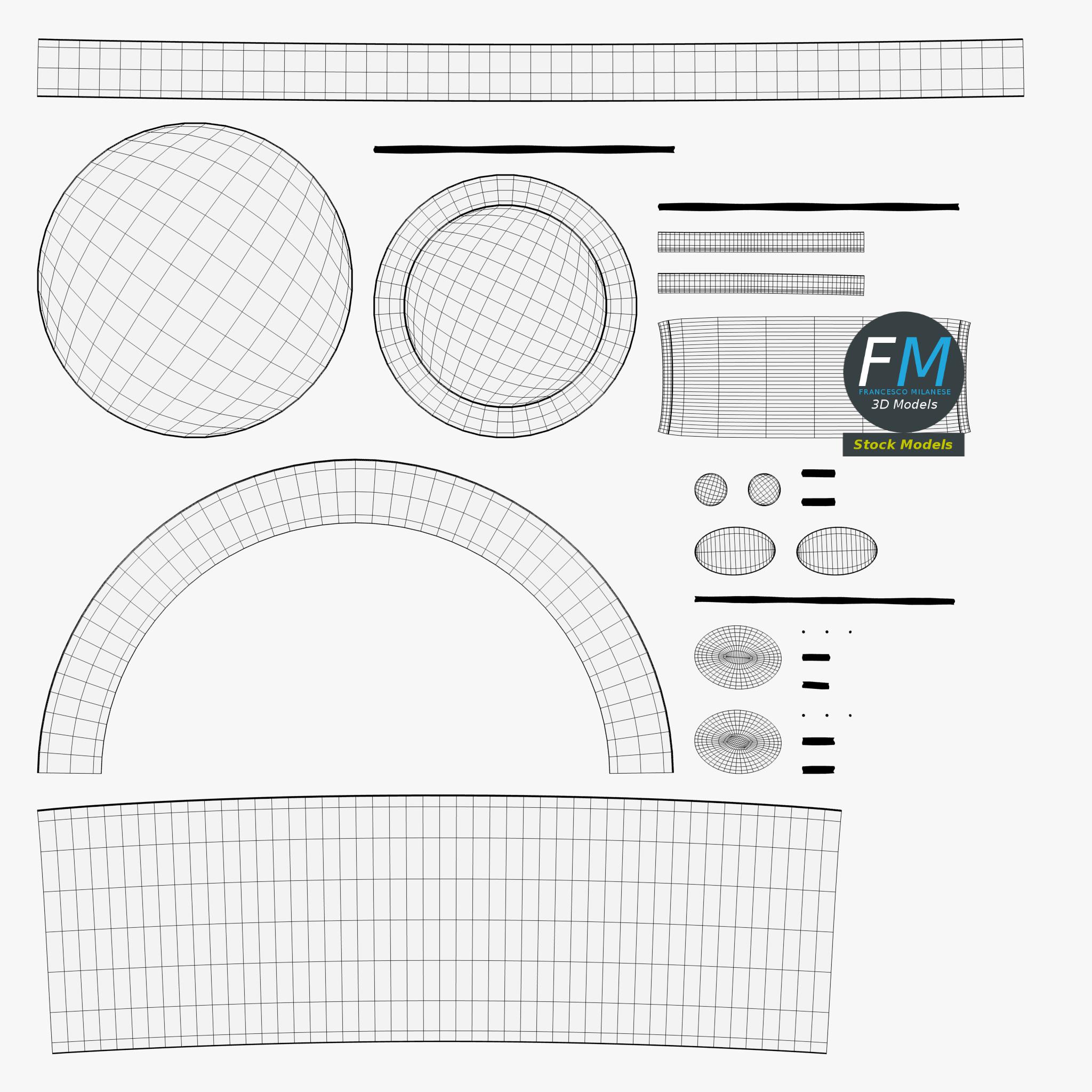 Easily customizable: UV unwrapped geometries, so you can create new Textures (or modify the existing ones) using the UV Layout maps provided in the package (as png with alpha).
