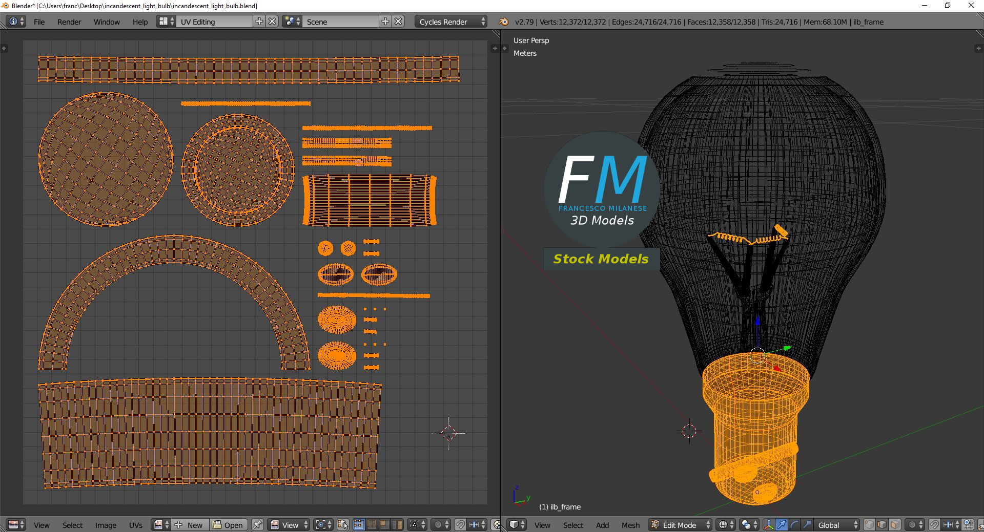 Incandescent light bulb 3D Model. 2 individual objects (frame, glass), each one with its own non overlapping UV Layout map, Material and PBR Textures set. Production-ready 3D Model, with PBR materials, textures, non overlapping UV Layout map provided in the package.