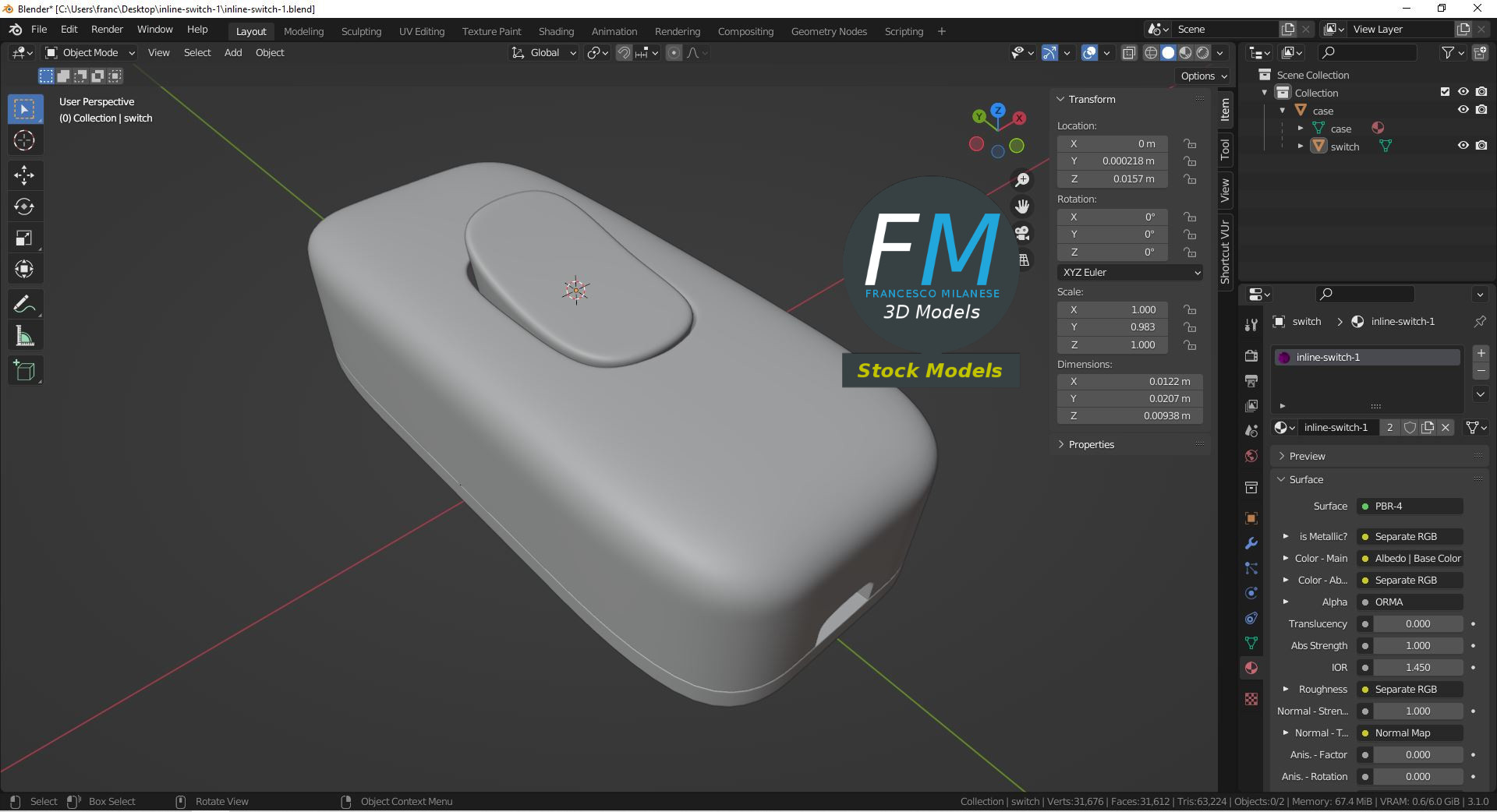 Inline switch 3D Model, nr. 1 in my collection. 2 individual objects (case, switch), sharing the same non overlapping UV Layout map, Material and PBR Textures set. Production-ready 3D Model, with PBR materials, textures, non overlapping UV Layout map provided in the package.
