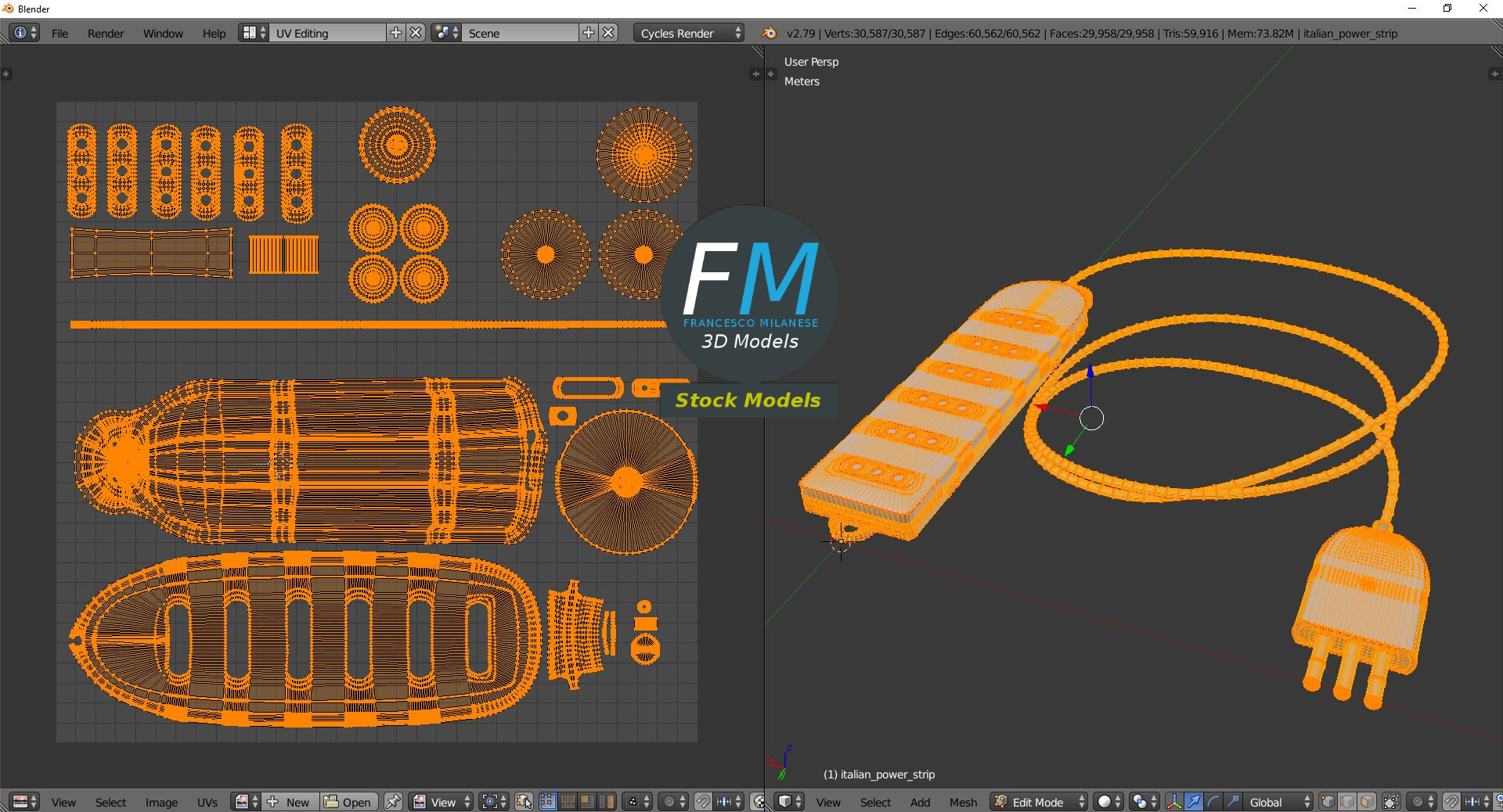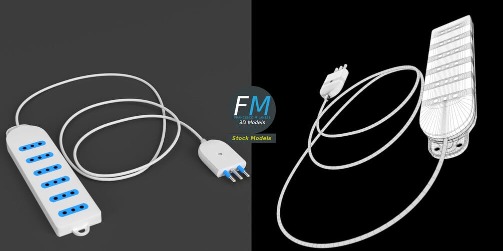 Italian power strip 3D Model. Production-ready 3D Model, with PBR materials, textures, non overlapping UV Layout map provided in the package.