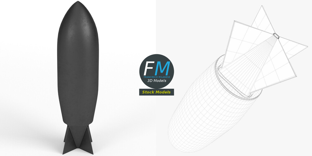 Kinetic projectile (also called Lazy dog bomb) 3D Model. Production-ready 3D Model, with PBR materials, textures, non overlapping UV Layout map provided in the package.