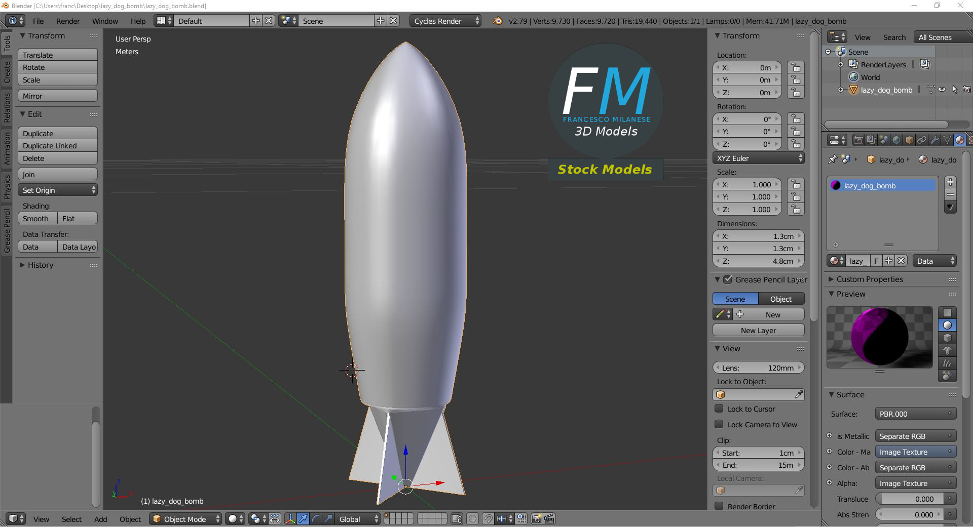 Made in Blender 3D 2.80 (Cycles / Eevee materials) then exported to OBJ and FBX; materials and textures made in Substance Painter, exported for PBR, V-Ray, Unity, Unreal.