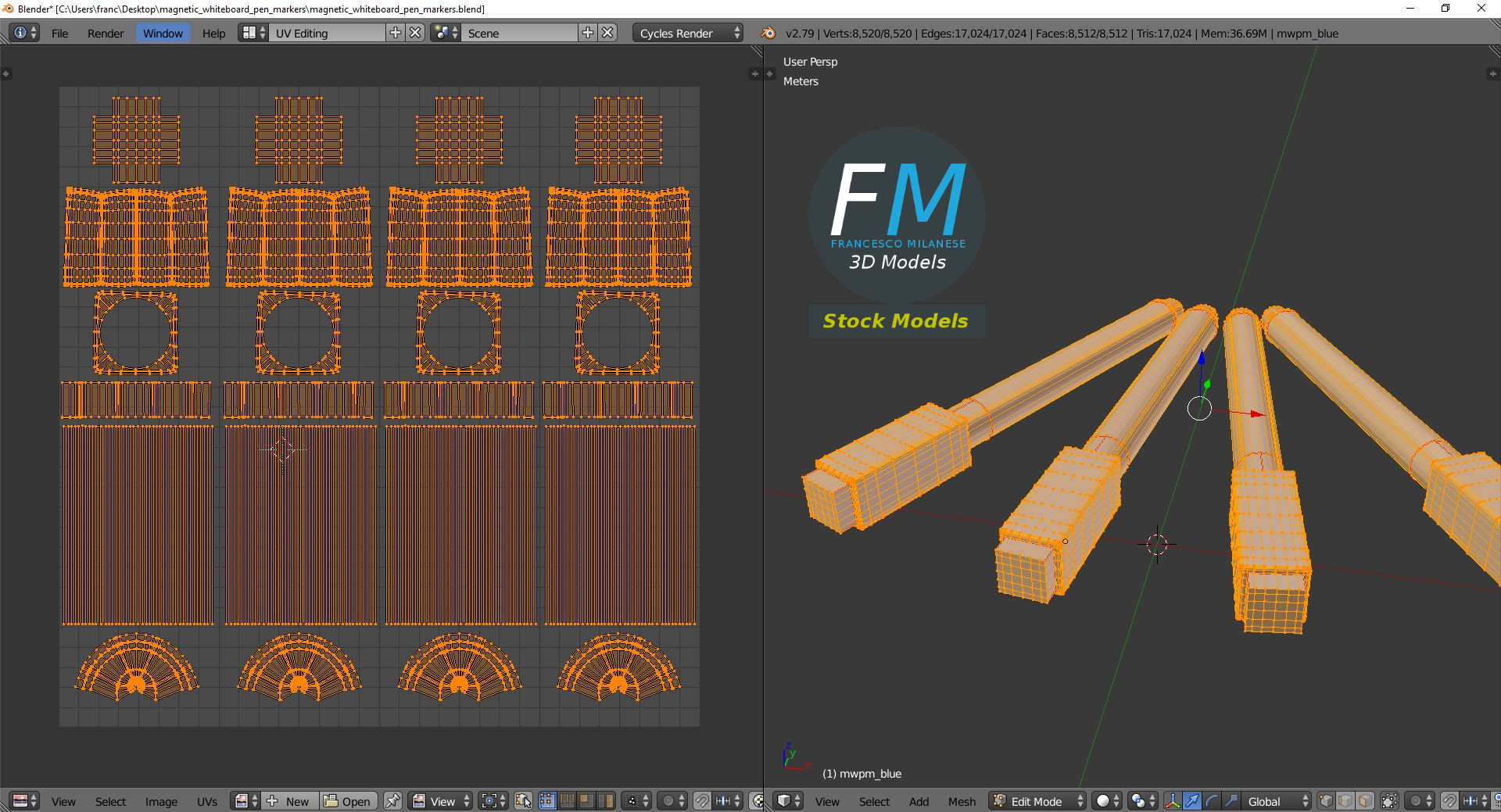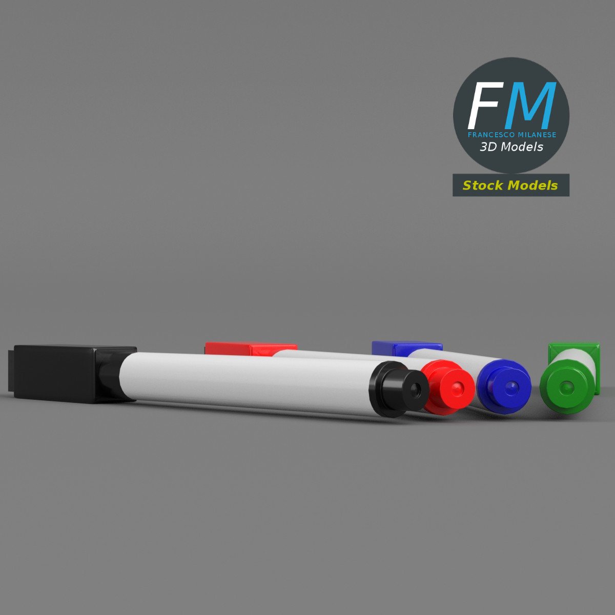 Magnetic whiteboard pen markers 3D Model. Production-ready 3D Model, with PBR materials, textures, non overlapping UV Layout map provided in the package.