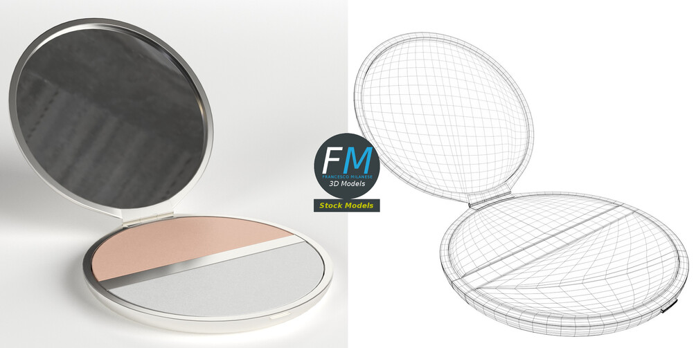 Makeup pocket powder 3D Model. 2 objects, parented, each one with its own non overlapping UV Layout map, Material and PBR Textures set. Production-ready 3D Model, with PBR materials, textures, non overlapping UV Layout map provided in the package.