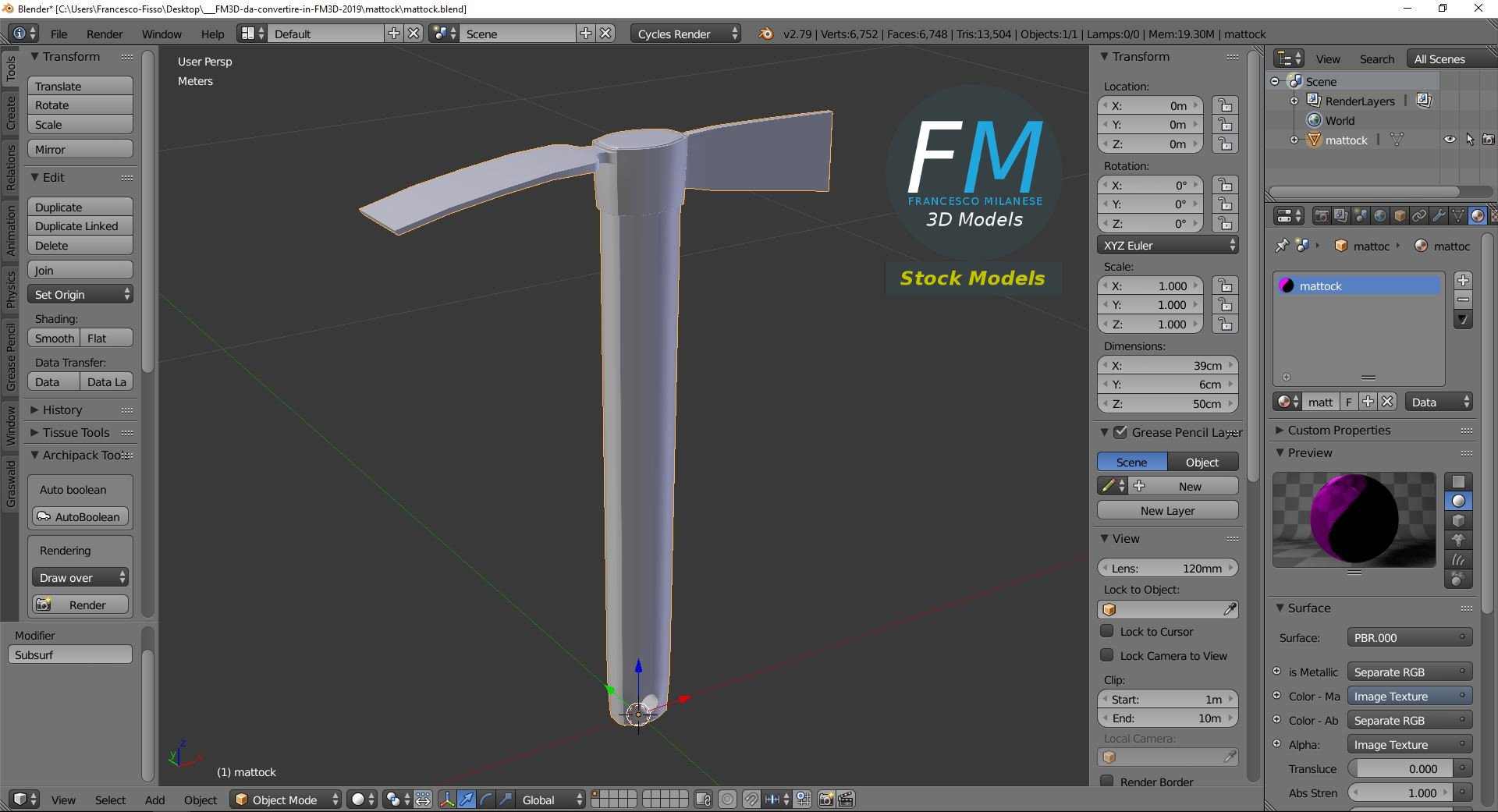 Sketchfab 3D preview: https://sketchfab.com/3d-models/mattock-4f6e222708db41568753c20bcf2329c2