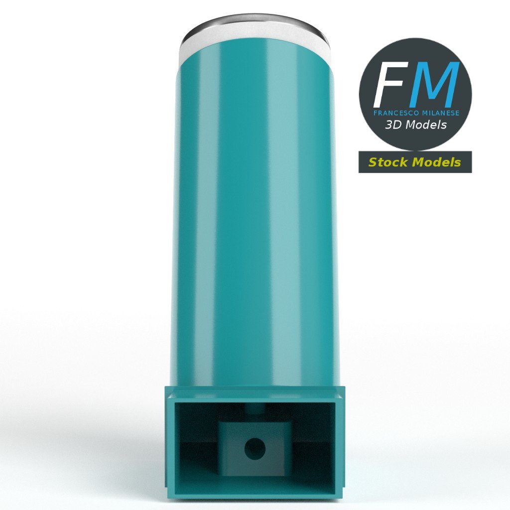 MDI metered dose inhaler 3D Model. 2 individual objects (actuator, canister), each one with its own non overlapping UV Layout map, Material and PBR Textures set. Production-ready 3D Model, with PBR materials, textures, non overlapping UV Layout map provided in the package.