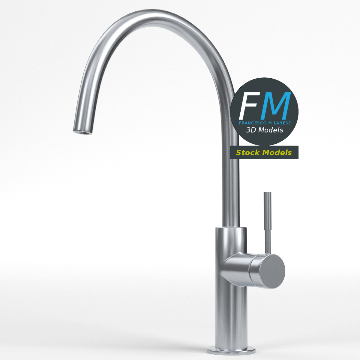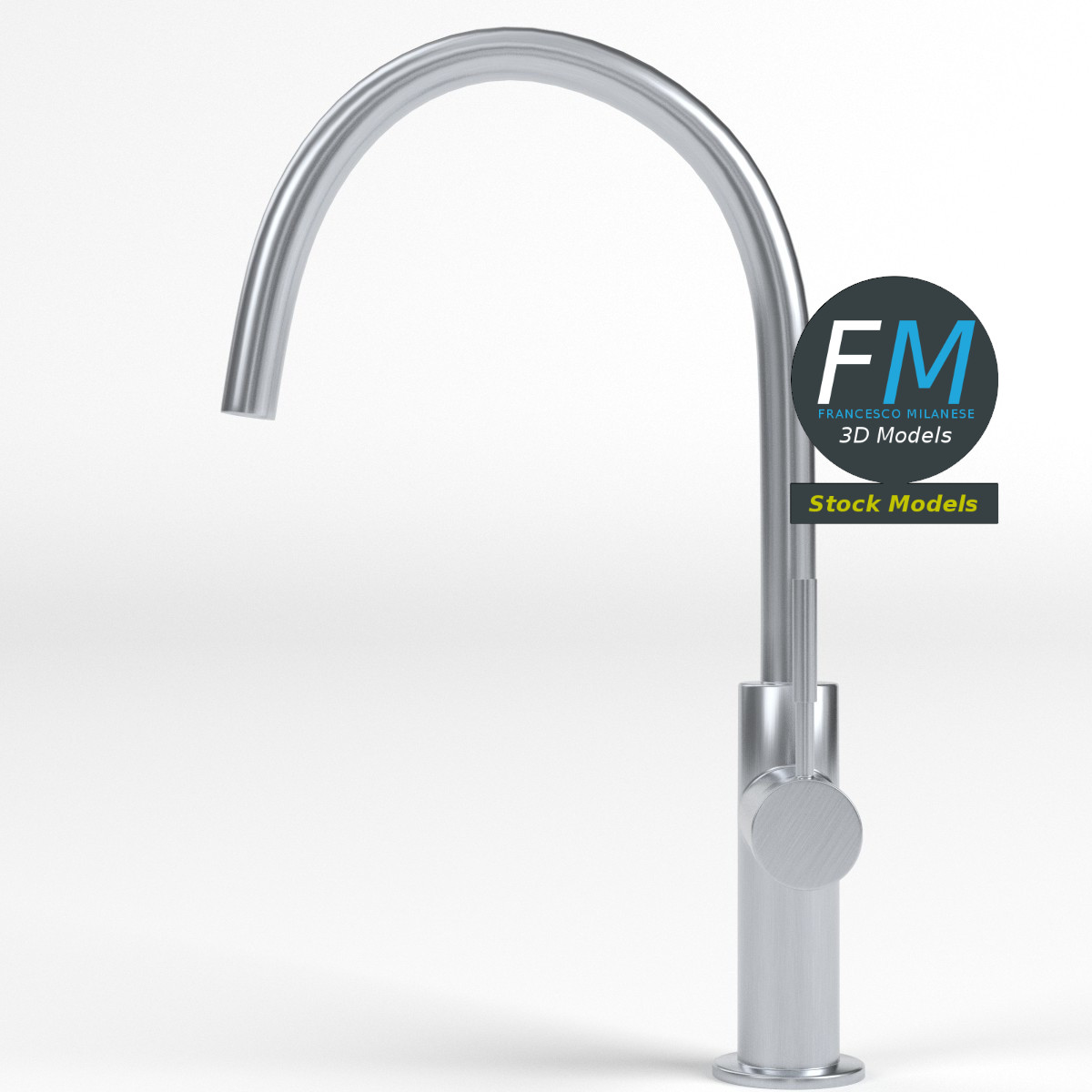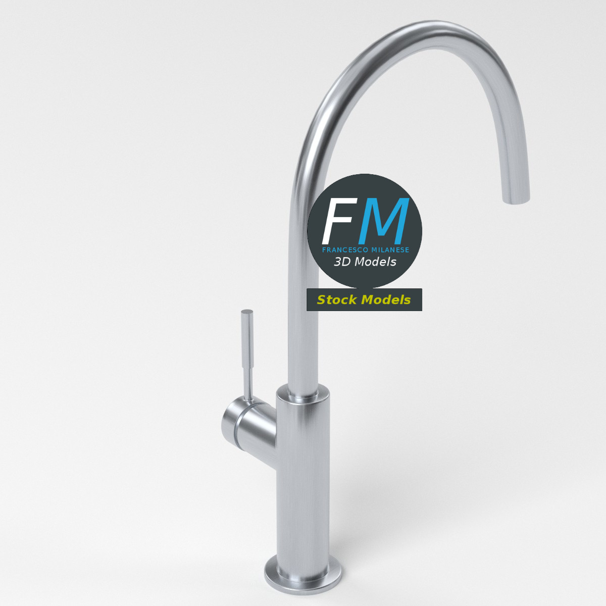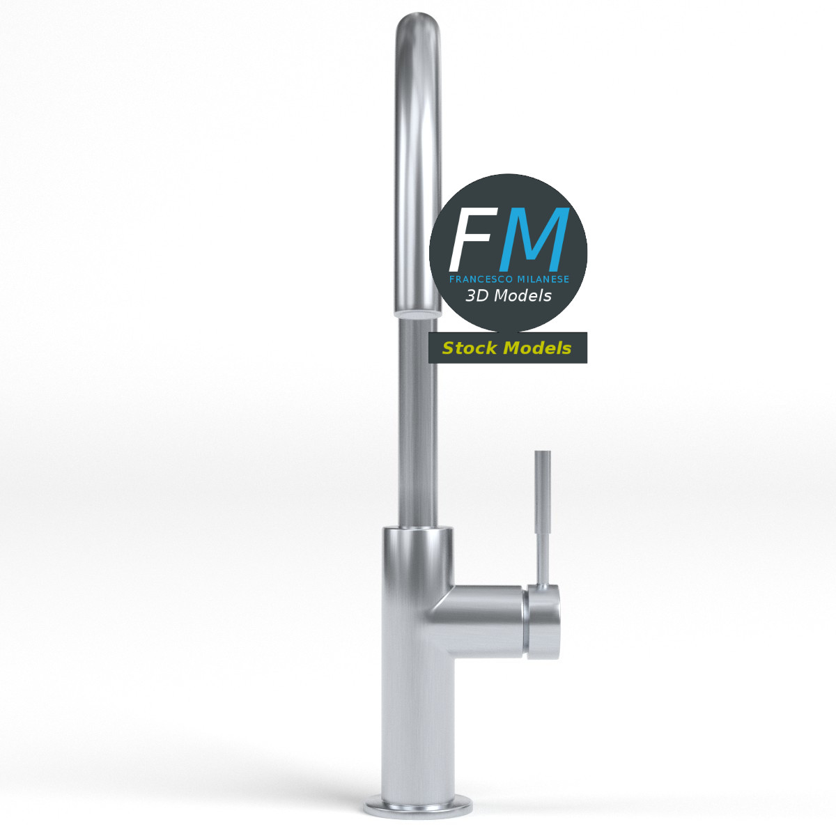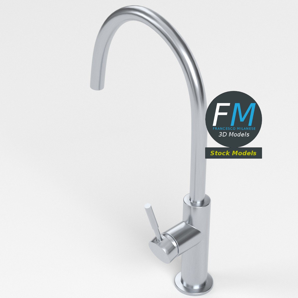 Modern kitchen faucet 3D Model. 2 individual objects (faucet, handle), sharing the same non overlapping UV Layout map, Material and PBR Textures set. Production-ready 3D Model, with PBR materials, textures, non overlapping UV Layout map provided in the package.
