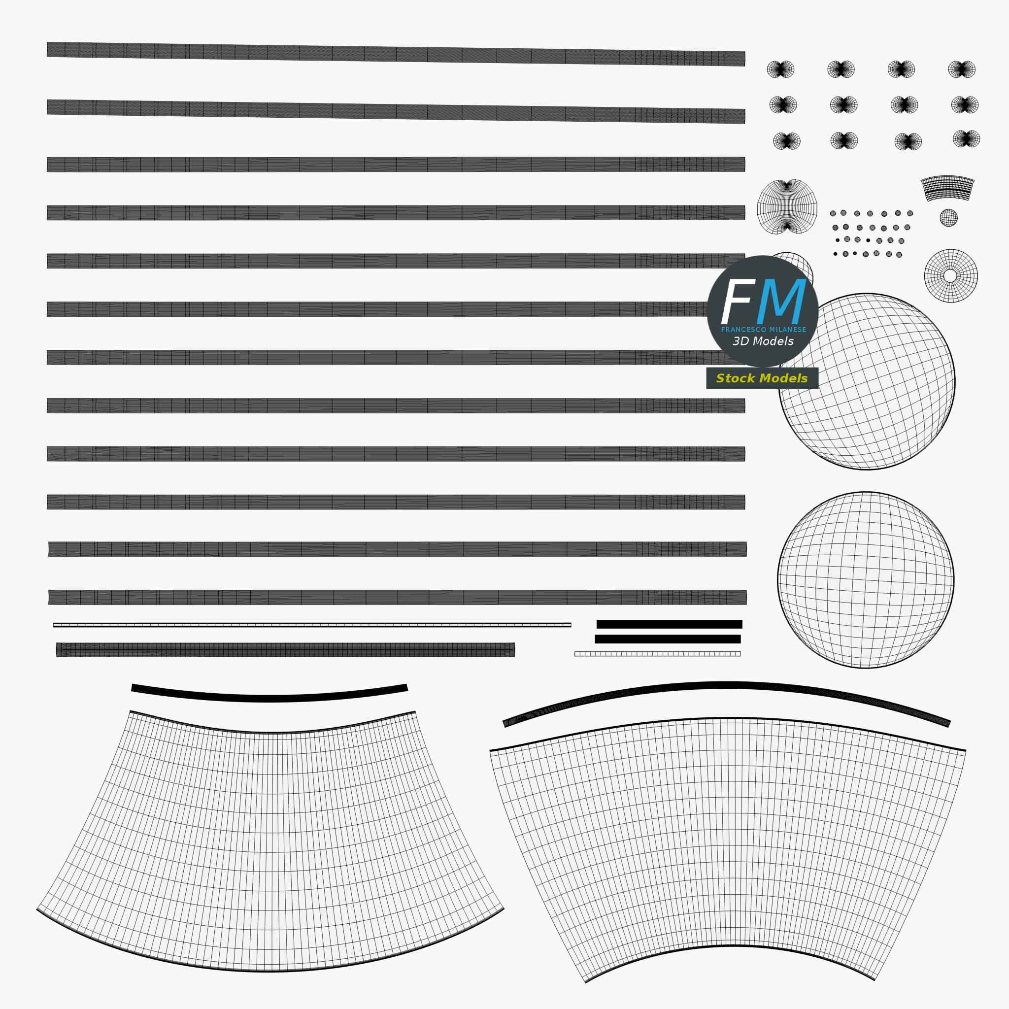 Easily customizable: UV unwrapped geometries, so you can create new Textures (or modify the existing ones) using the UV Layout maps provided in the package (as png with alpha).