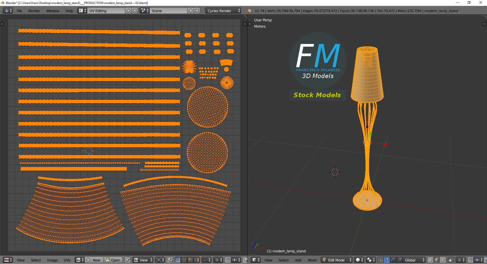 Polygonal, QUADS ONLY (no tris/ngons); 39794 vertices, 39736 quad faces (79472 tris).