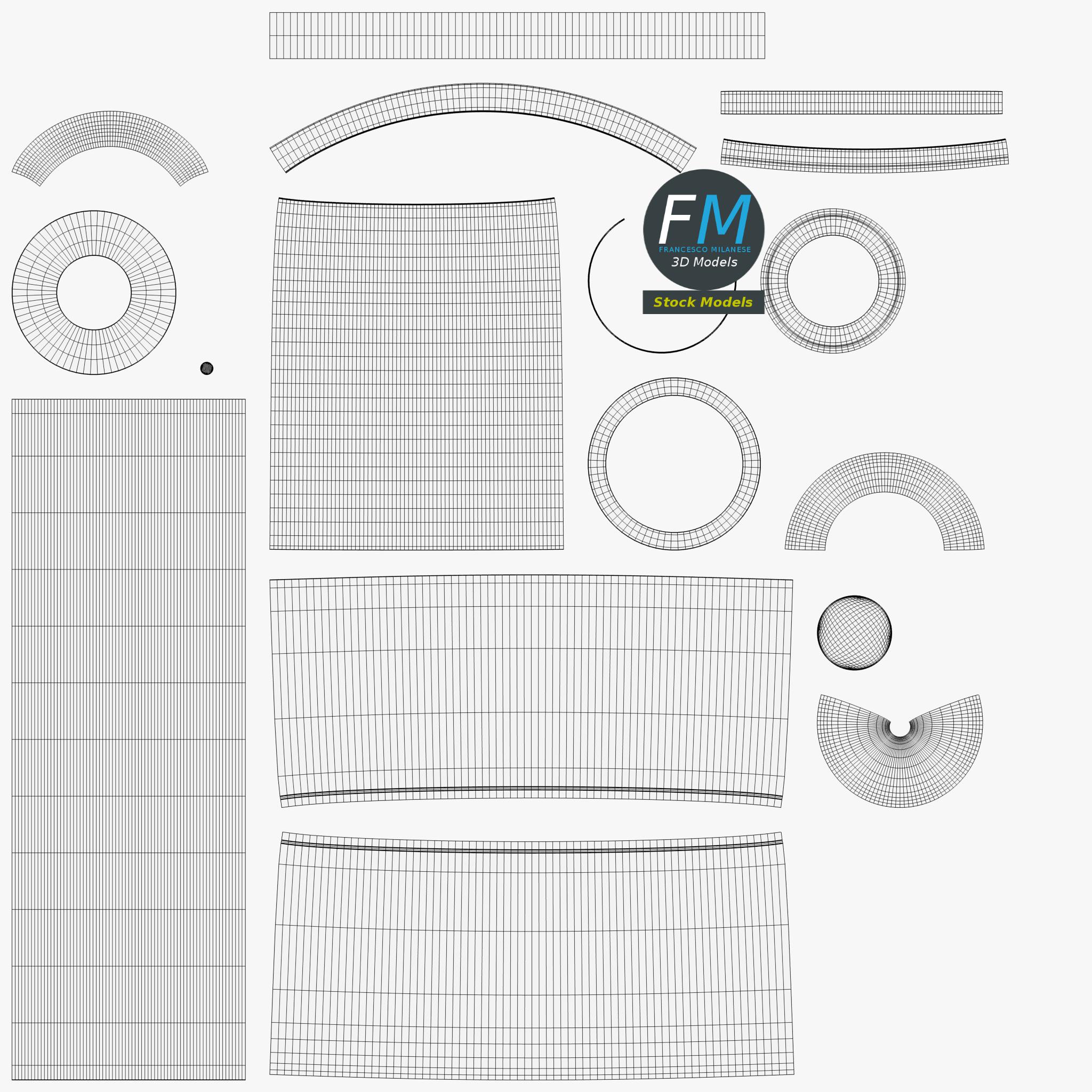 Easily customizable: UV unwrapped geometries, so you can create new Textures (or modify the existing ones) using the UV Layout maps provided in the package (as png with alpha).
