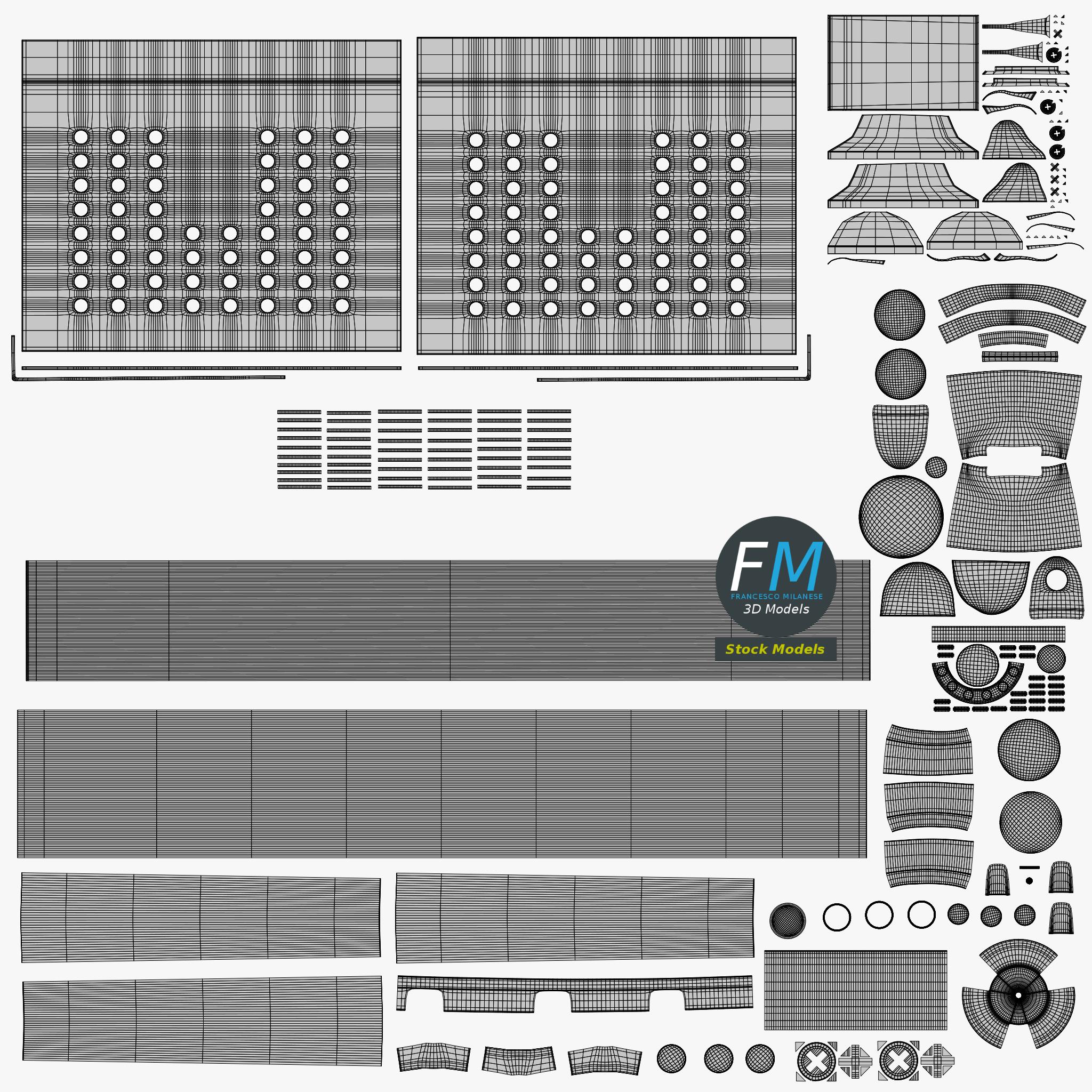 4 Objects (meshes), 1 PBR Material, UV unwrapped (non overlapping UV Layout map provided in the package); UV-mapped Textures.