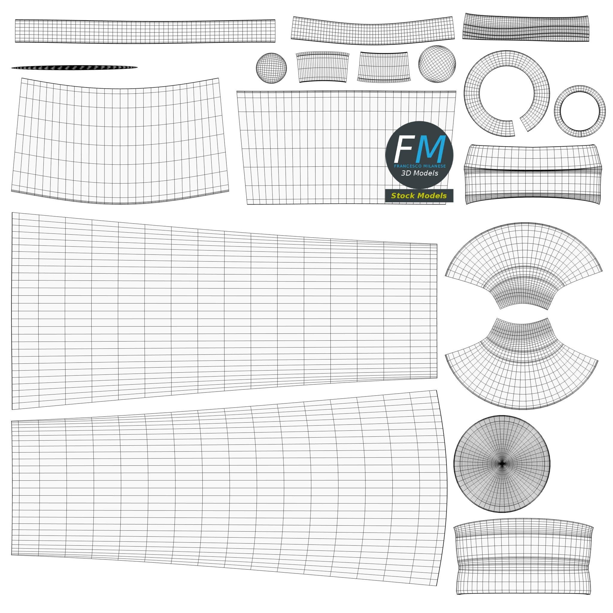 Easily customizable: UV unwrapped geometries, so you can create new Textures (or modify the existing ones) using the UV Layout maps provided in the package (as png with alpha).