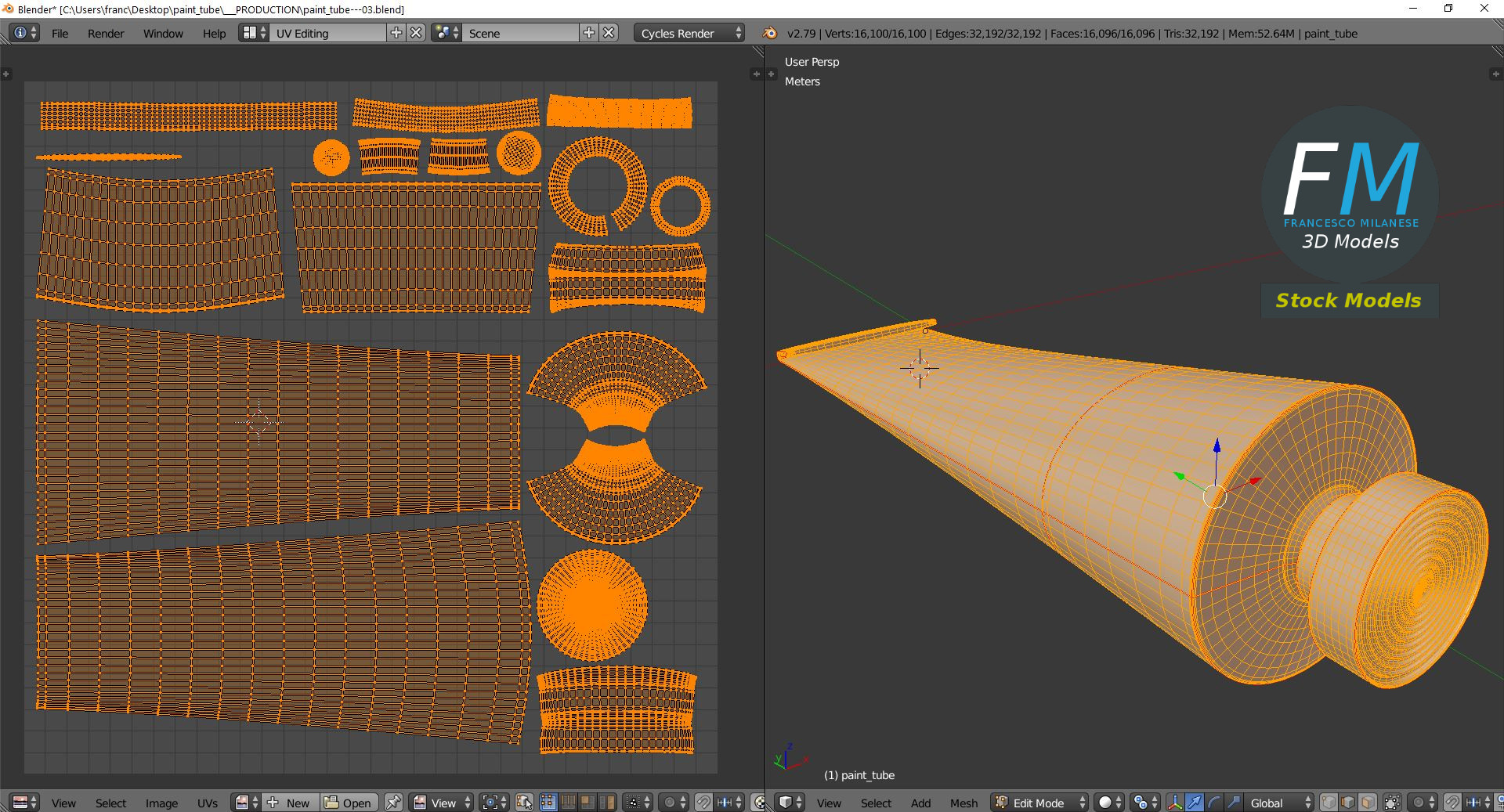 Paint tube 3D Model. Production-ready 3D Model, with PBR materials, textures, non overlapping UV Layout map provided in the package.