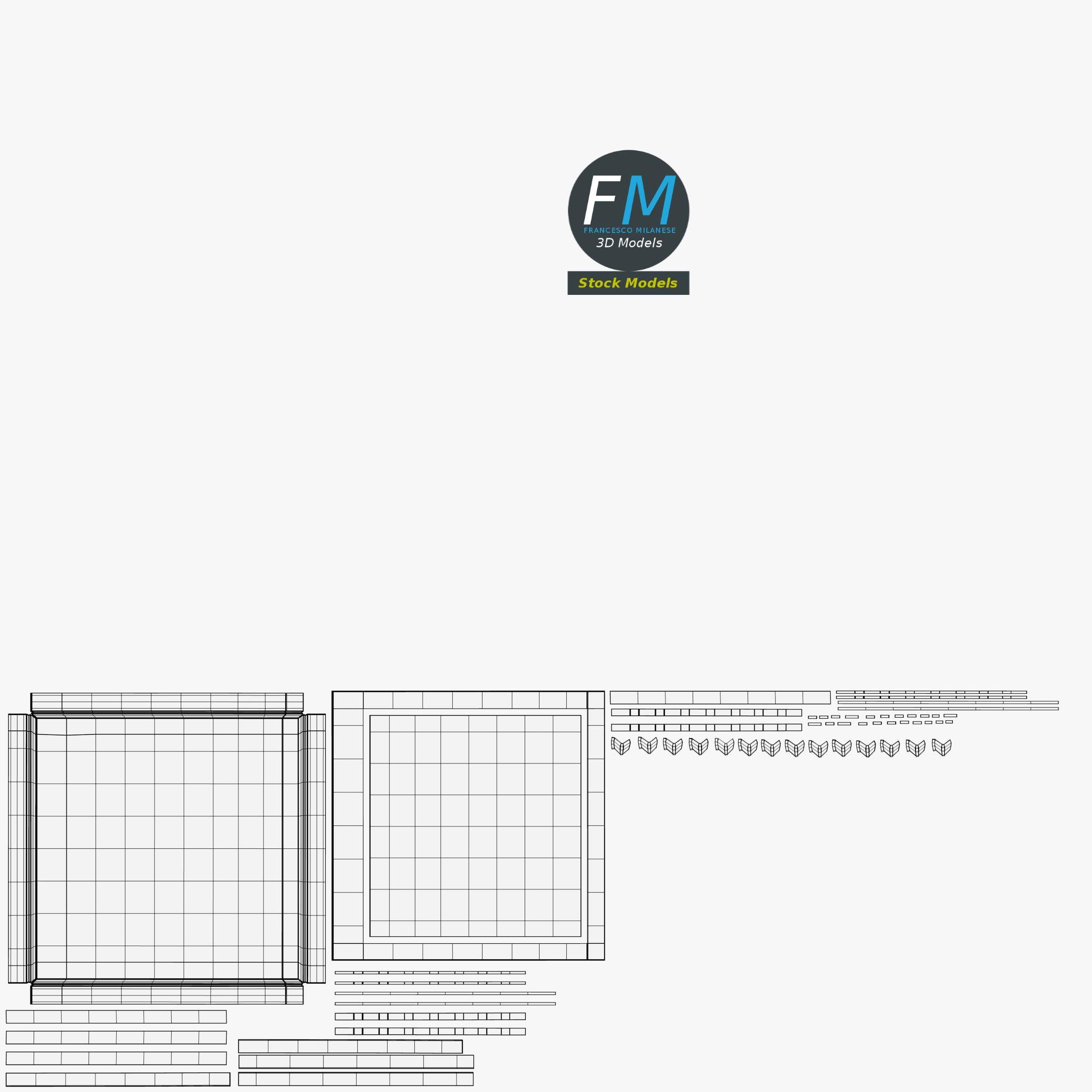 3 Objects (meshes), 1 PBR Material, UV unwrapped (non overlapping UV Layout map provided in the package); UV-mapped Textures.