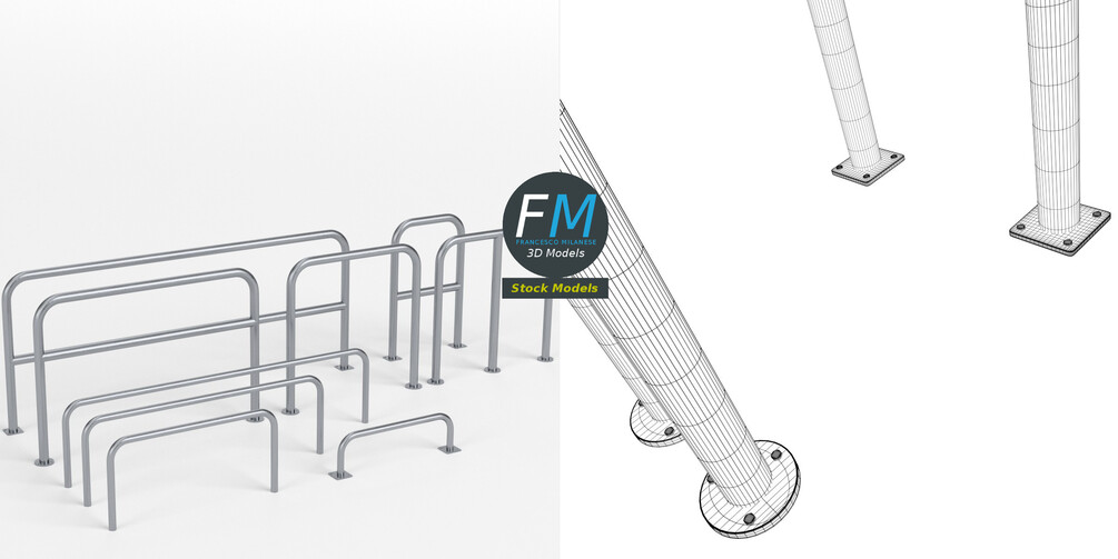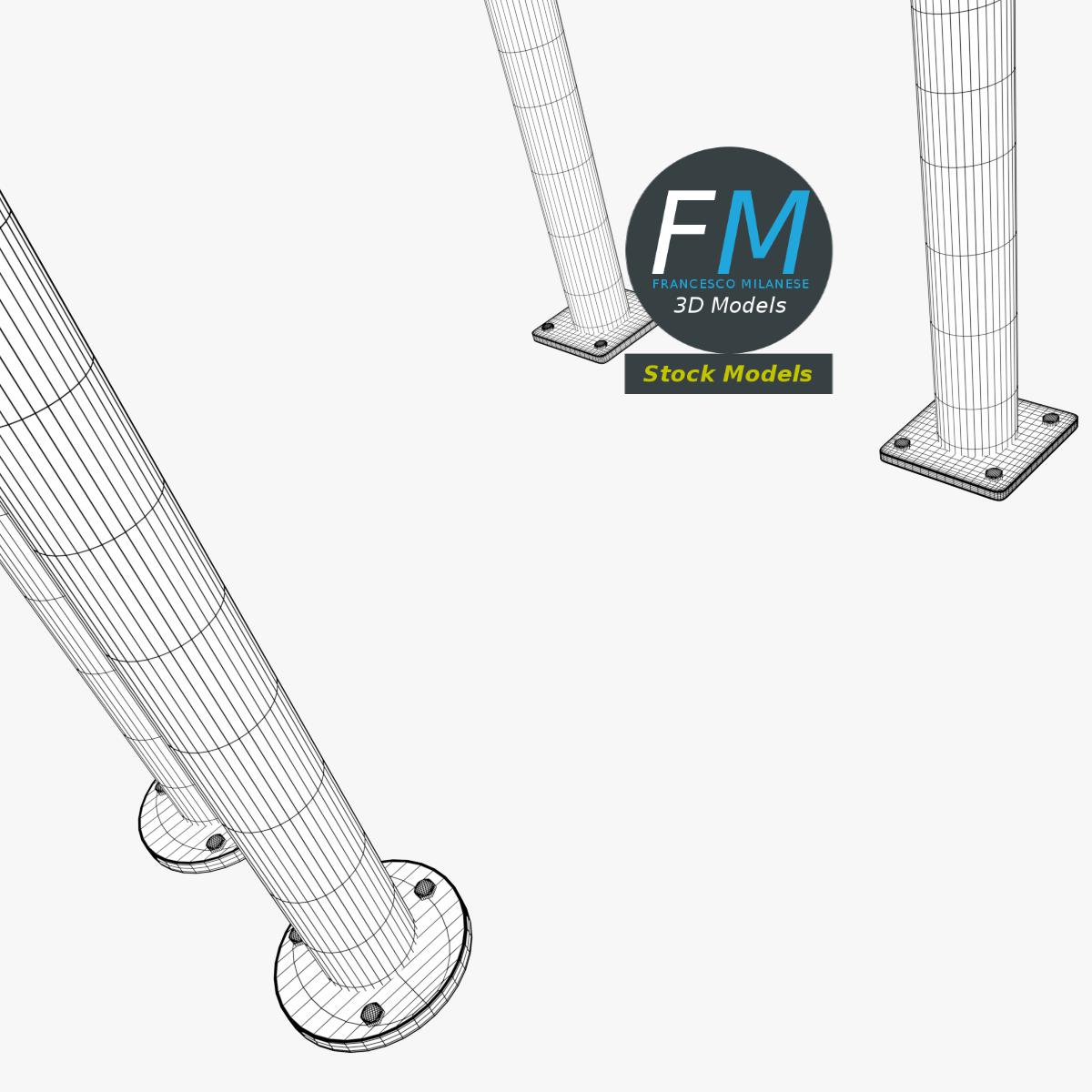 Perimeter hooped barriers 3D Models. 9 individual objects sharing the same non overlapping UV Layout map, Material and PBR Textures set. Production-ready 3D Model, with PBR materials, textures, non overlapping UV Layout map provided in the package.