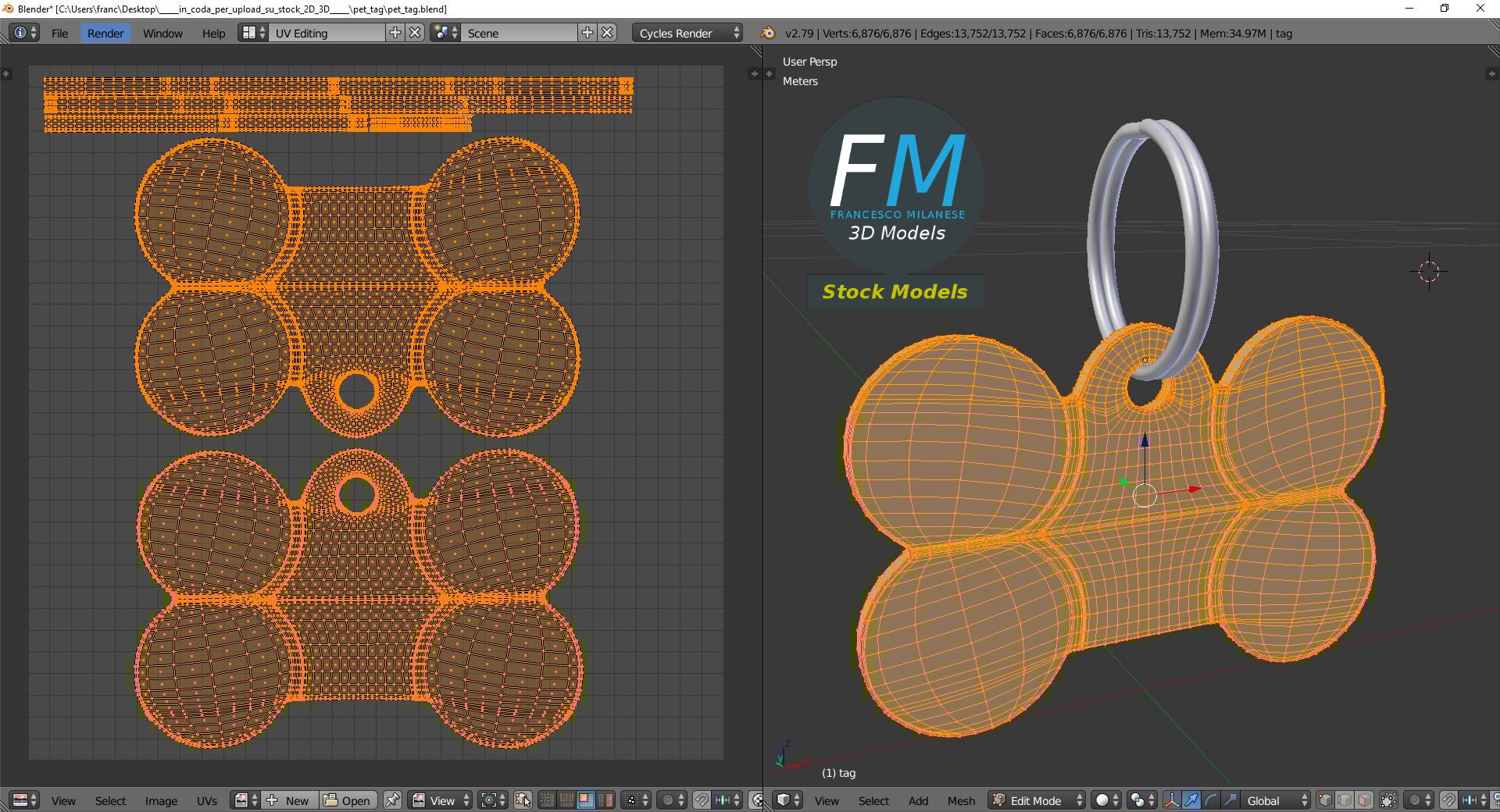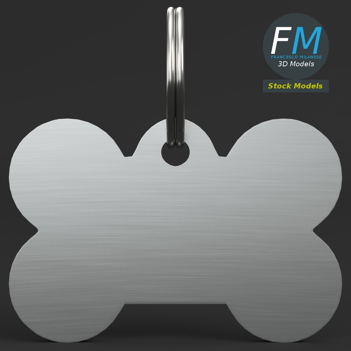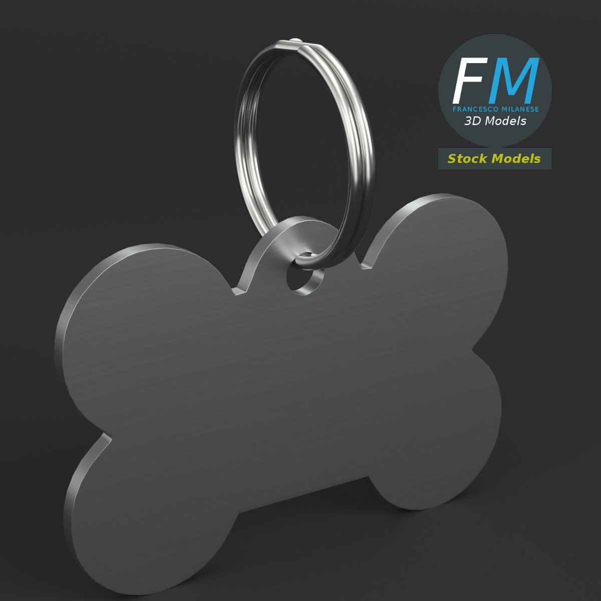 Pet tag 3D Model. 2 individual objects (small split ring, tag), each one with its own non overlapping UV Layout map, Material and PBR Textures set. Production-ready 3D Model, with PBR materials, textures, non overlapping UV Layout map provided in the package.