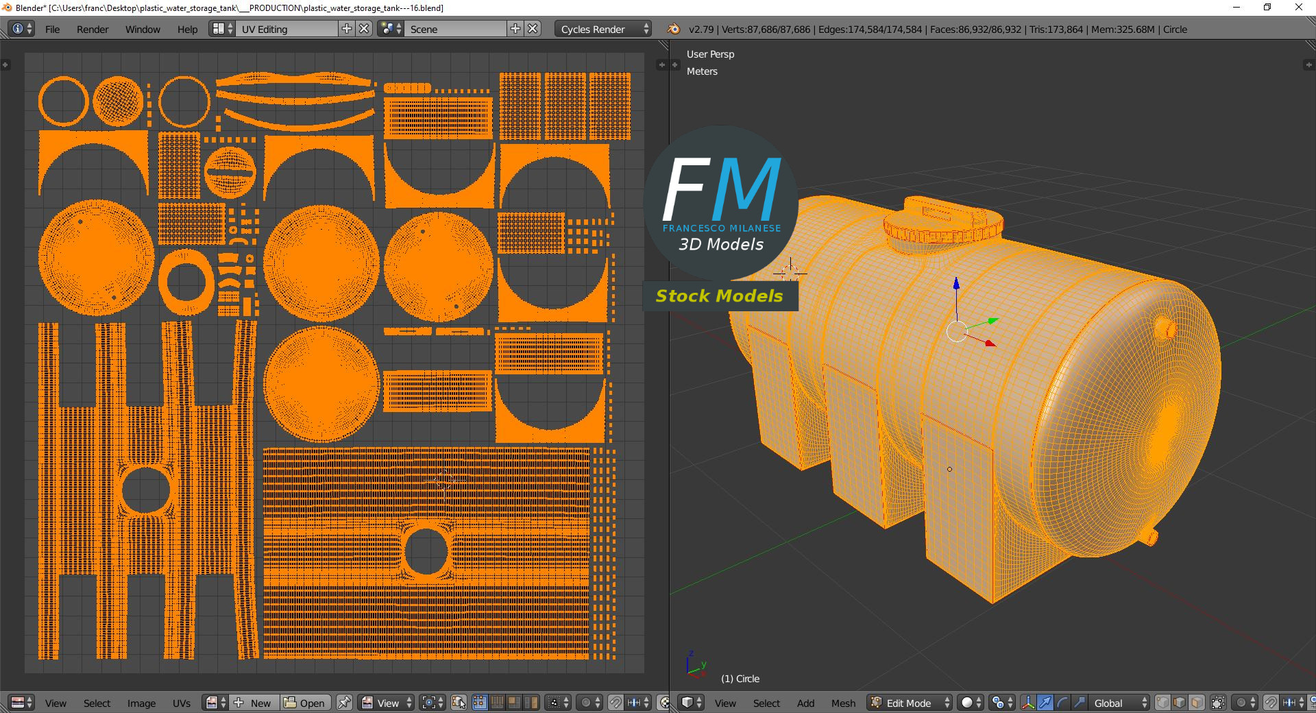 Plastic water storage tank 3D Model. Production-ready 3D Model, with PBR materials, textures, non overlapping UV Layout map provided in the package.