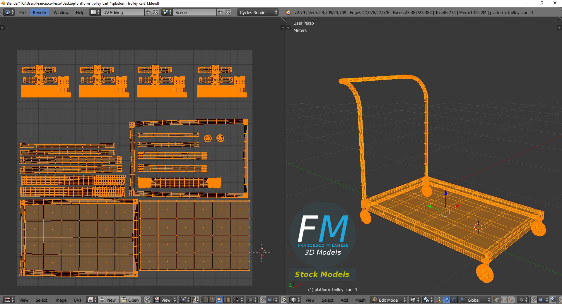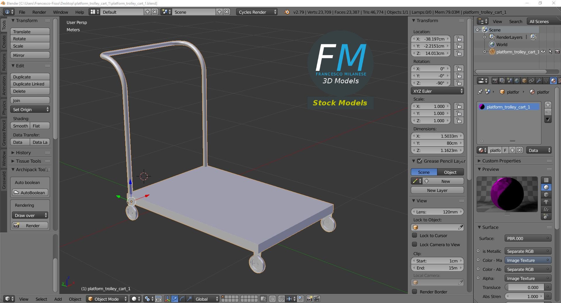 Platform trolley cart 3D Model, nr. 1 in my collection. Production-ready 3D Model, with PBR materials, textures, non overlapping UV Layout map provided in the package.