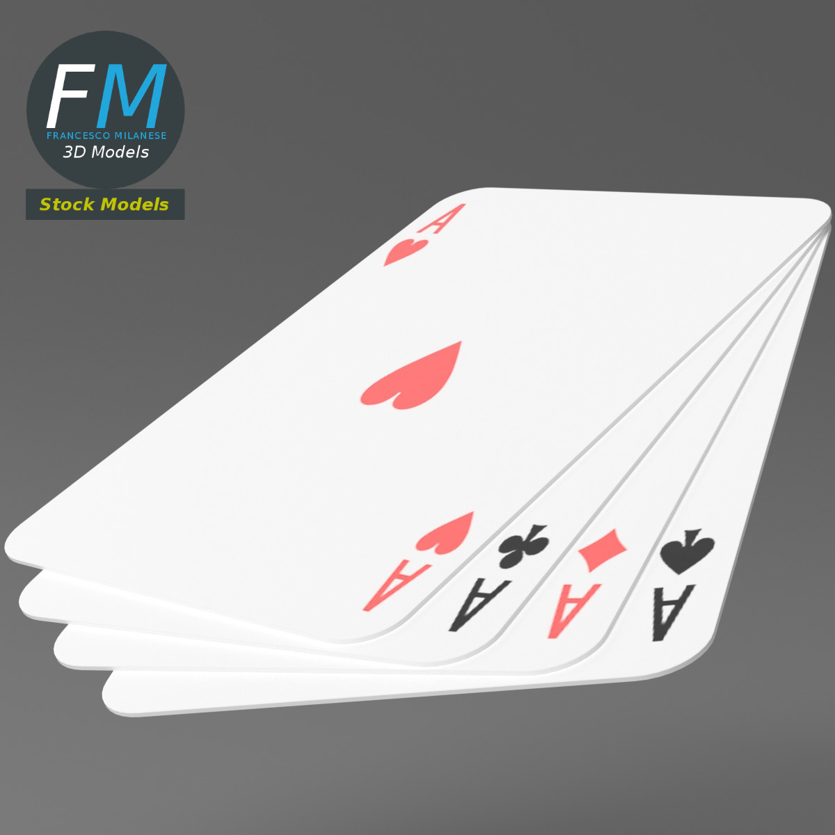 Poker cards 3D Model. Production-ready 3D Model, with PBR materials, textures, non overlapping UV Layout map provided in the package.