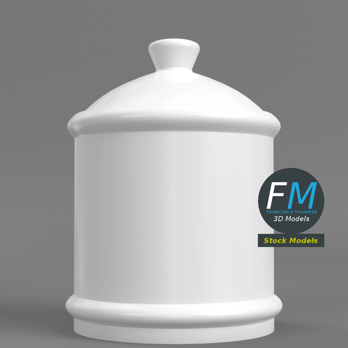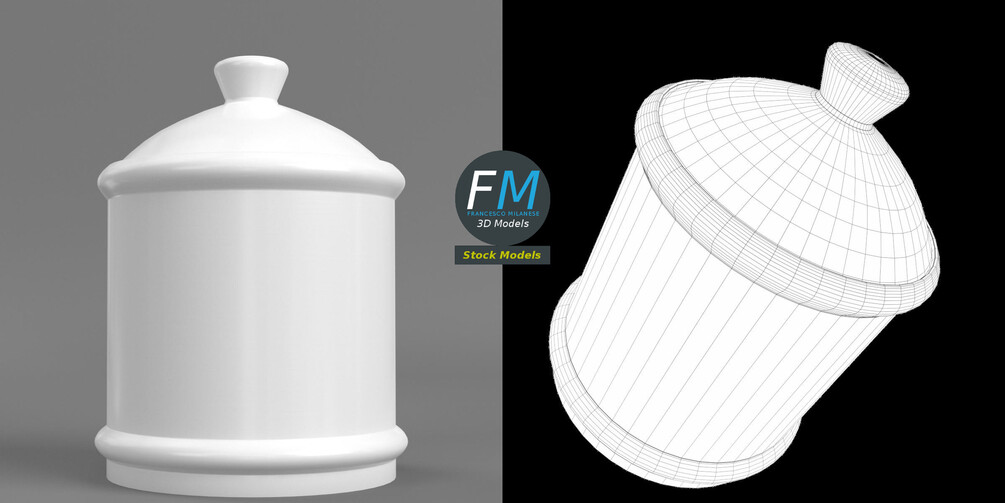 Ceramic porcelain jar 3D Model. 2 individual objects (container, cap), sharing the same non overlapping UV Layout map, Material and PBR Textures set. Production-ready 3D Model, with PBR materials, textures, non overlapping UV Layout map provided in the package.