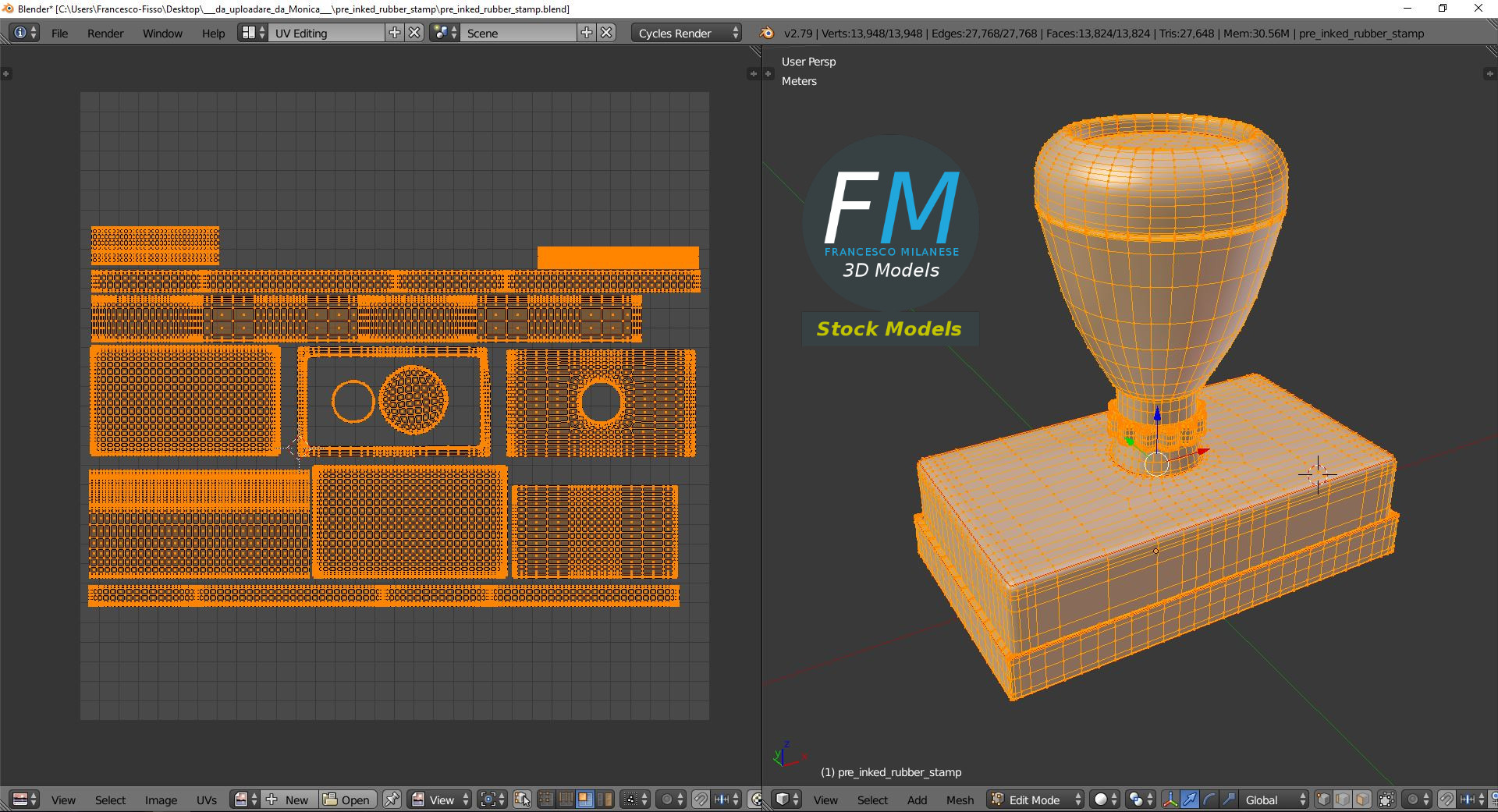 Pre-inked rubber stamp 3D Model. Production-ready 3D Model, with PBR materials, textures, non overlapping UV Layout map provided in the package.