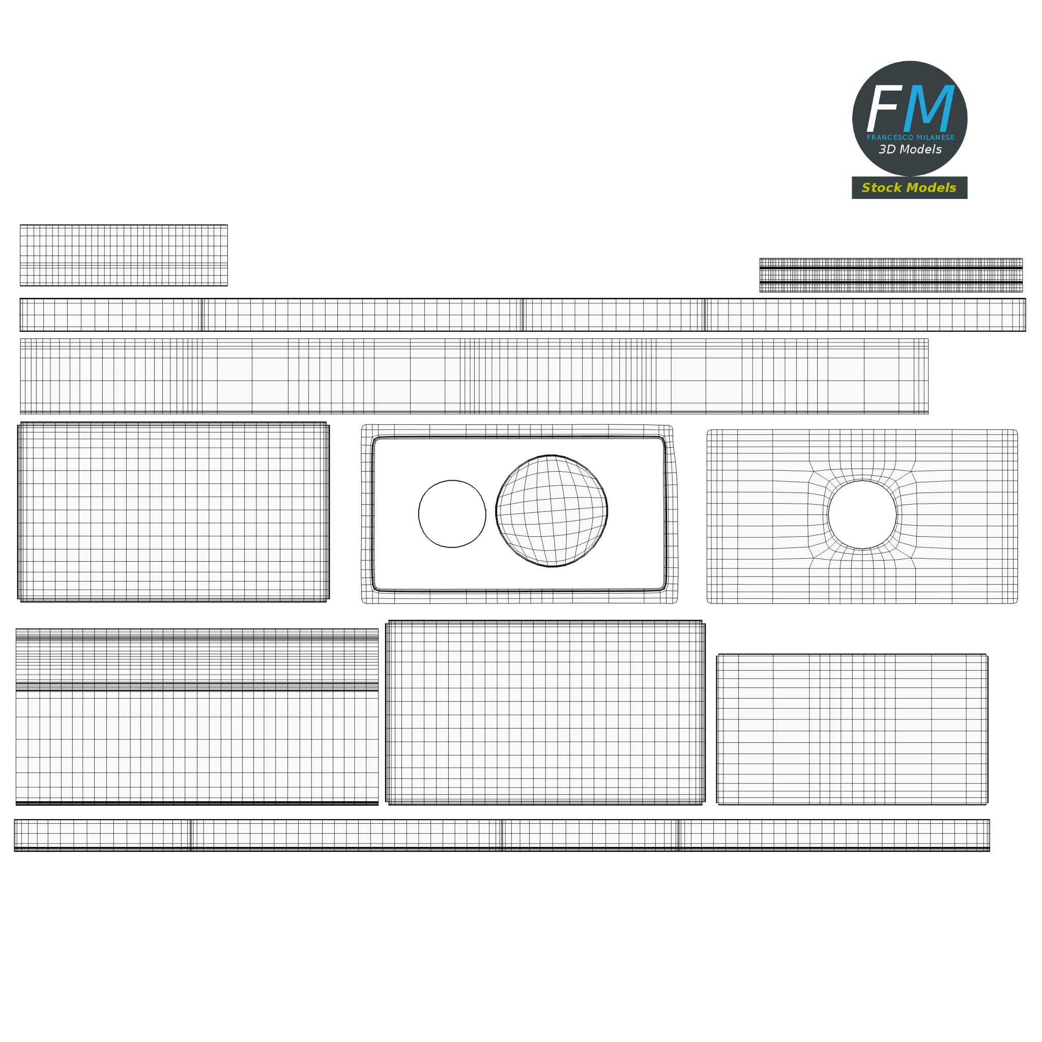 Easily customizable: UV unwrapped geometries, so you can create new Textures (or modify the existing ones) using the UV Layout maps provided in the package (as png with alpha).
