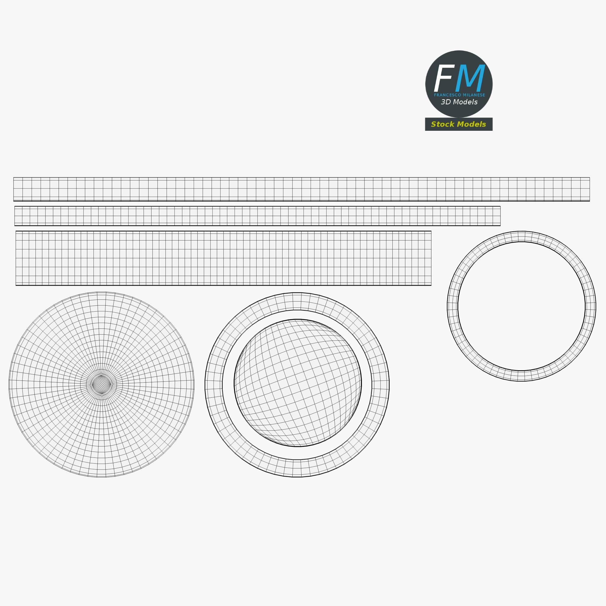 Easily customizable: UV unwrapped geometries, so you can create new Textures (or modify the existing ones) using the UV Layout maps provided in the package (as png with alpha).