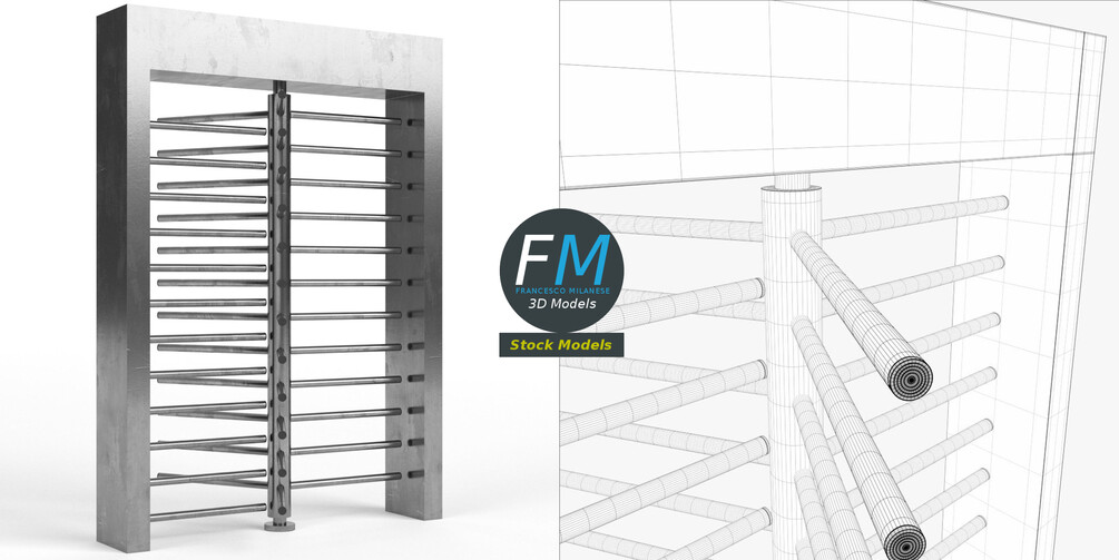 Revolving gate 3D Model. Production-ready 3D Model, with PBR materials, textures, non overlapping UV Layout map provided in the package.