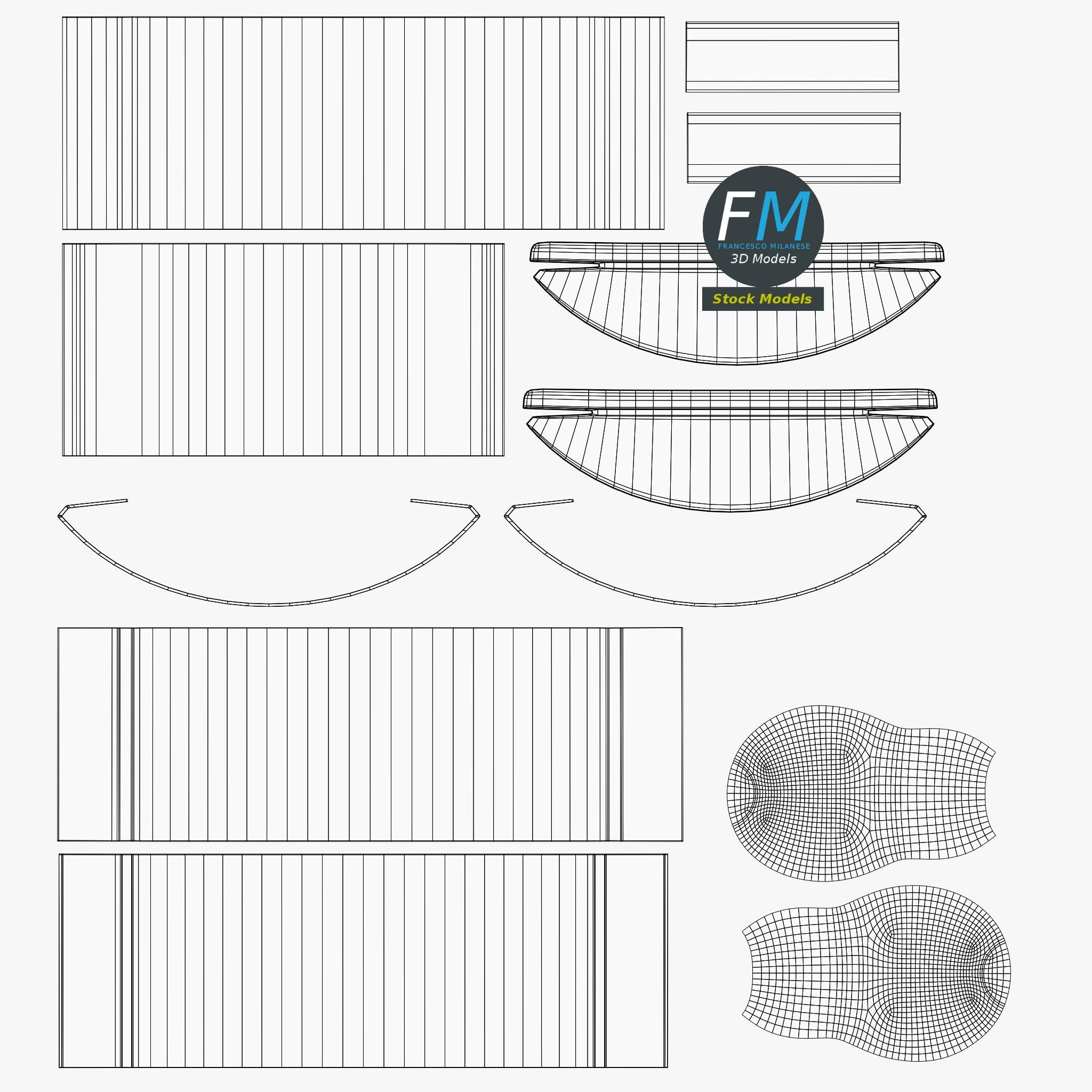 Easily customizable: UV unwrapped geometries; UV Layout maps provided in the package as png with alpha images.