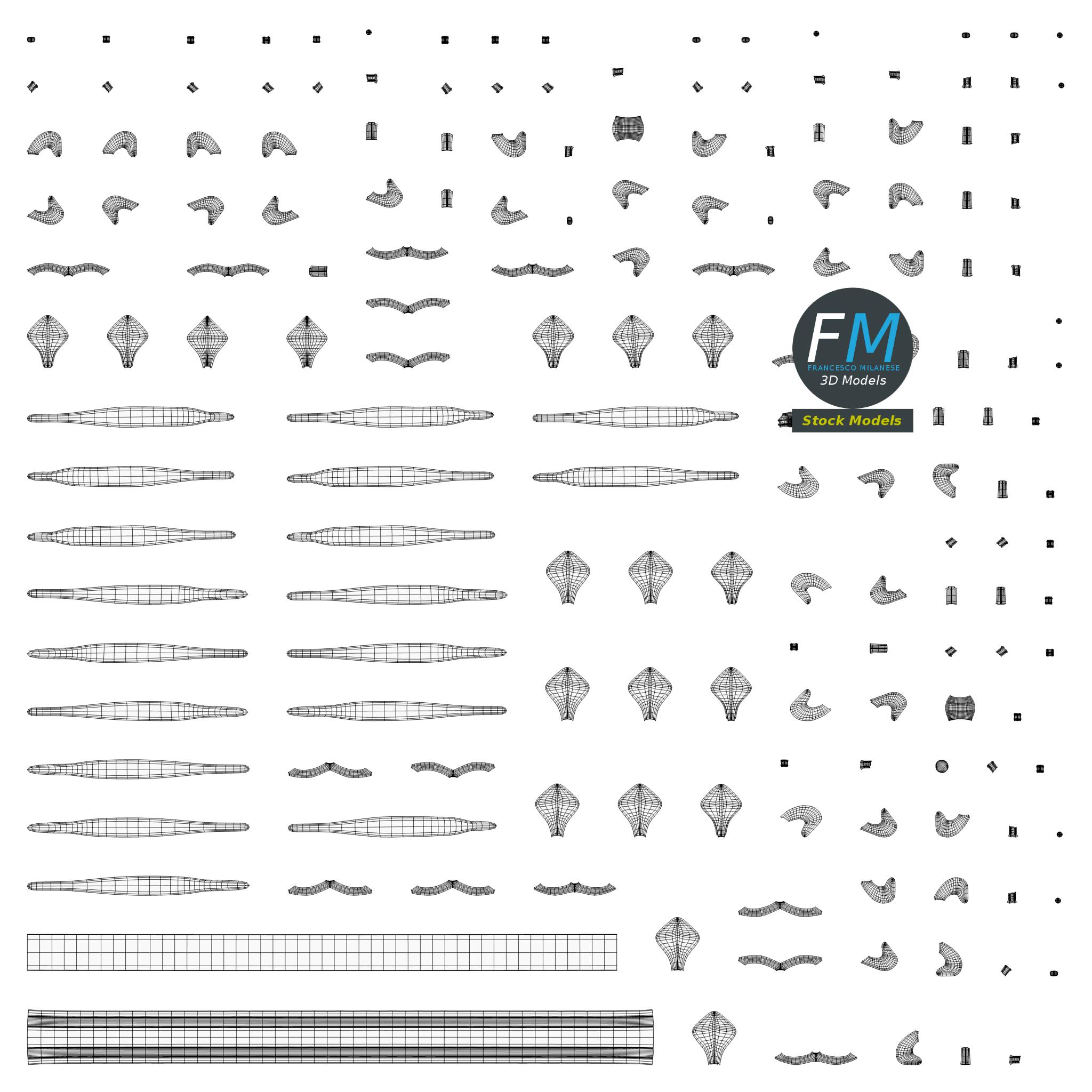 Easily customizable: UV unwrapped geometries, so you can create new Textures (or modify the existing ones) using the UV Layout maps provided in the package (as png with alpha).