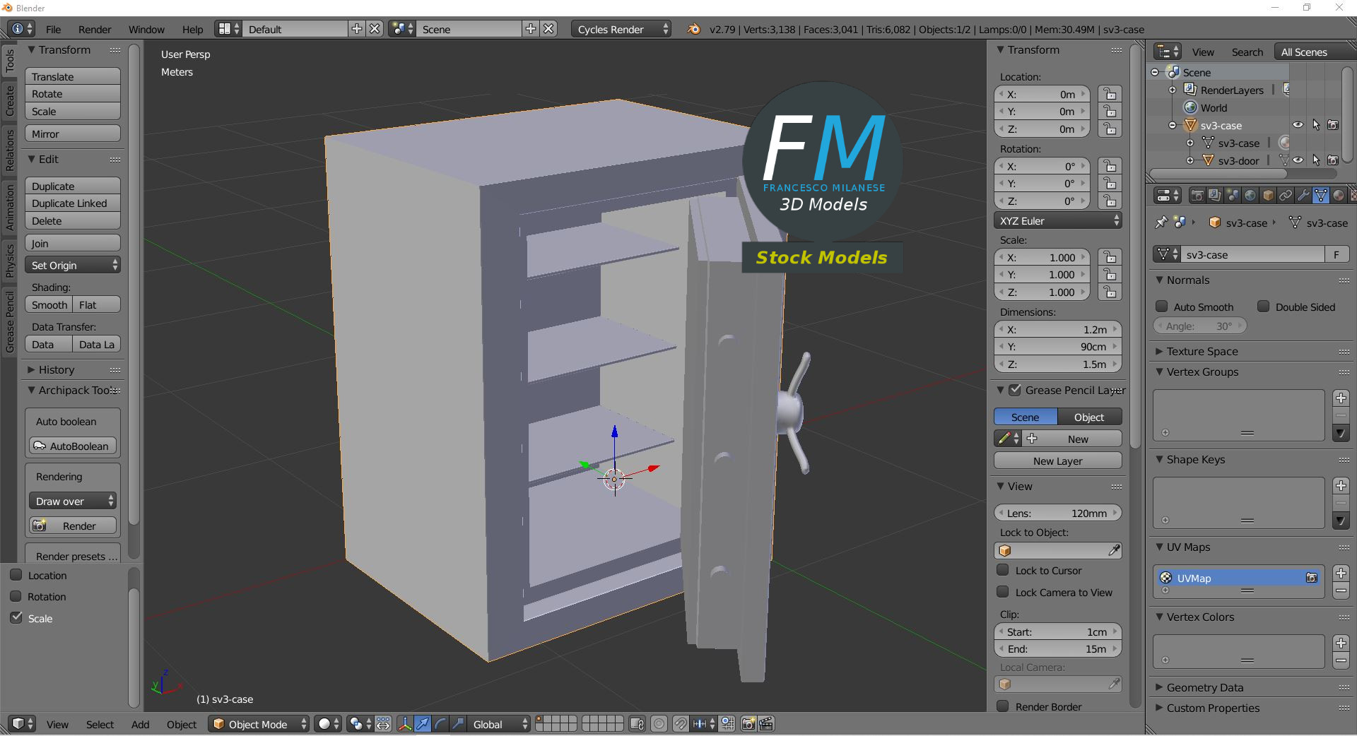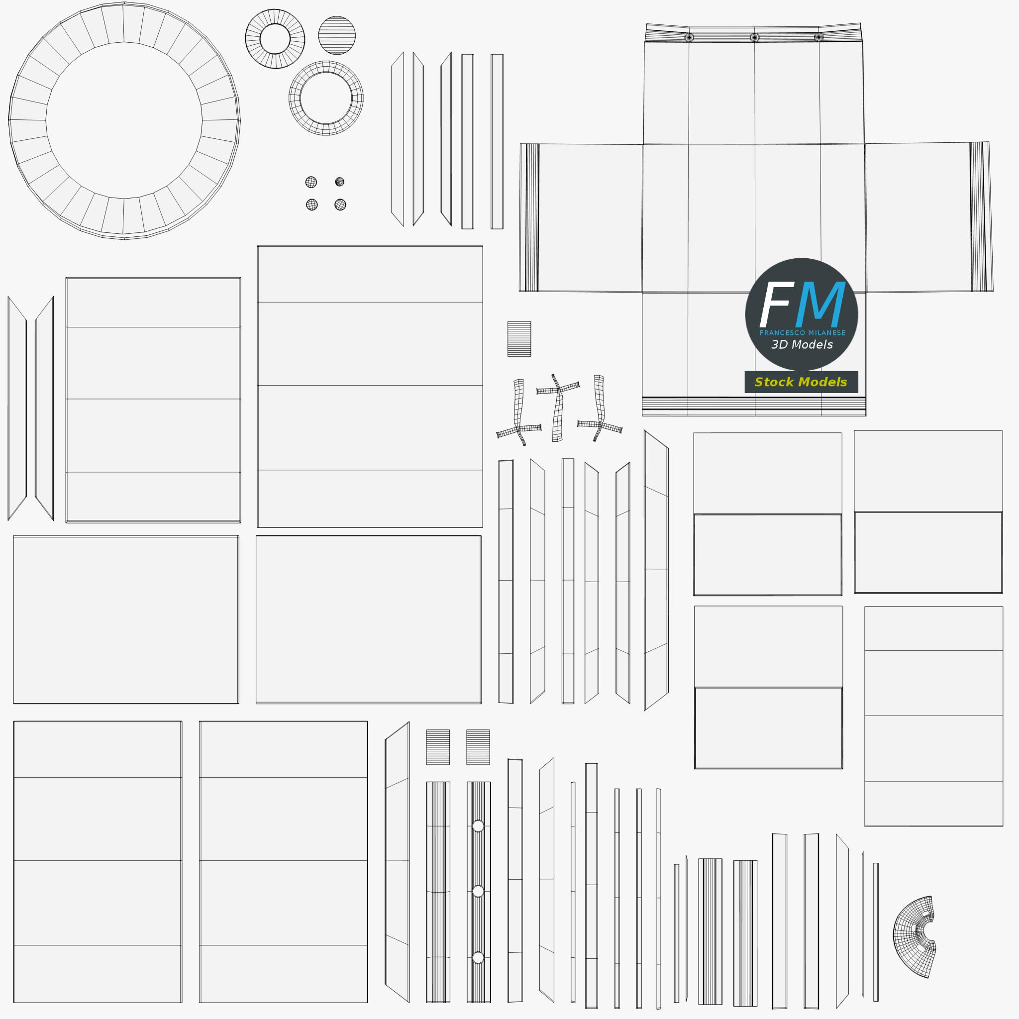 Easily customizable: UV unwrapped geometries, so you can create new Textures (or modify the existing ones) using the UV Layout maps provided in the package (as png with alpha).