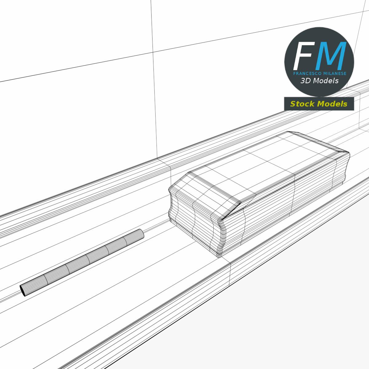 3 Objects (meshes), 1 PBR Material, UV unwrapped (non overlapping UV Layout map provided in the package); UV-mapped Textures.