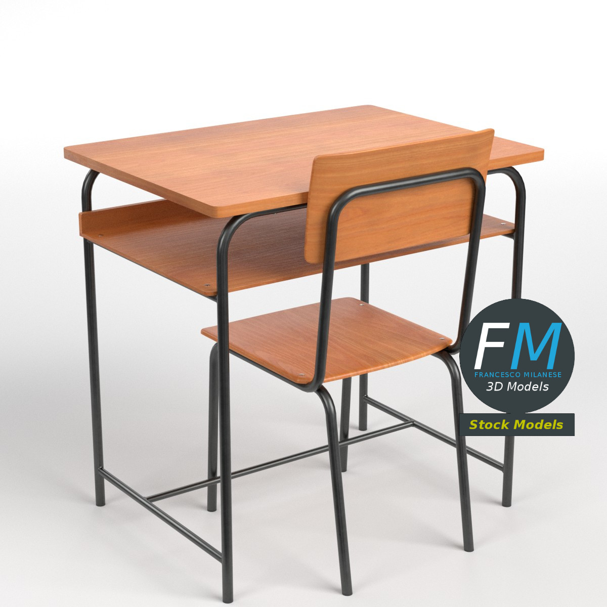 School desk and chair 3D Model, nr. 2 in my collection. 2 individual objects (desk, chair), sharing the same non overlapping UV Layout map, Material and PBR Textures set. Production-ready 3D Model, with PBR materials, textures, non overlapping UV Layout map provided in the package.