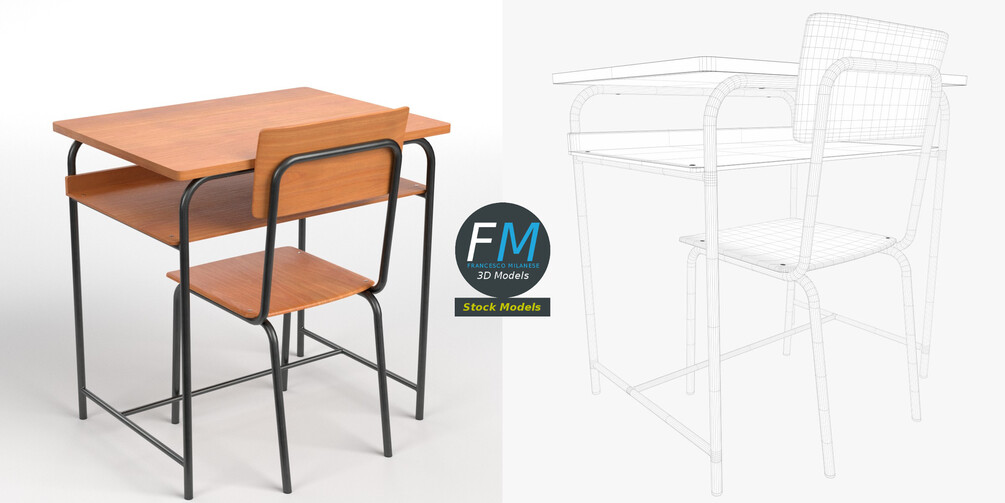 Sketchfab 3D preview: https://sketchfab.com/3d-models/school-desk-and-chair-2-def67a2baecf4e2e8e1de193f44a622c